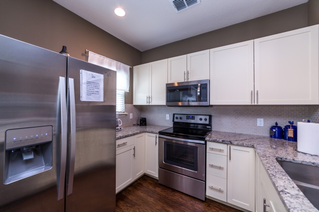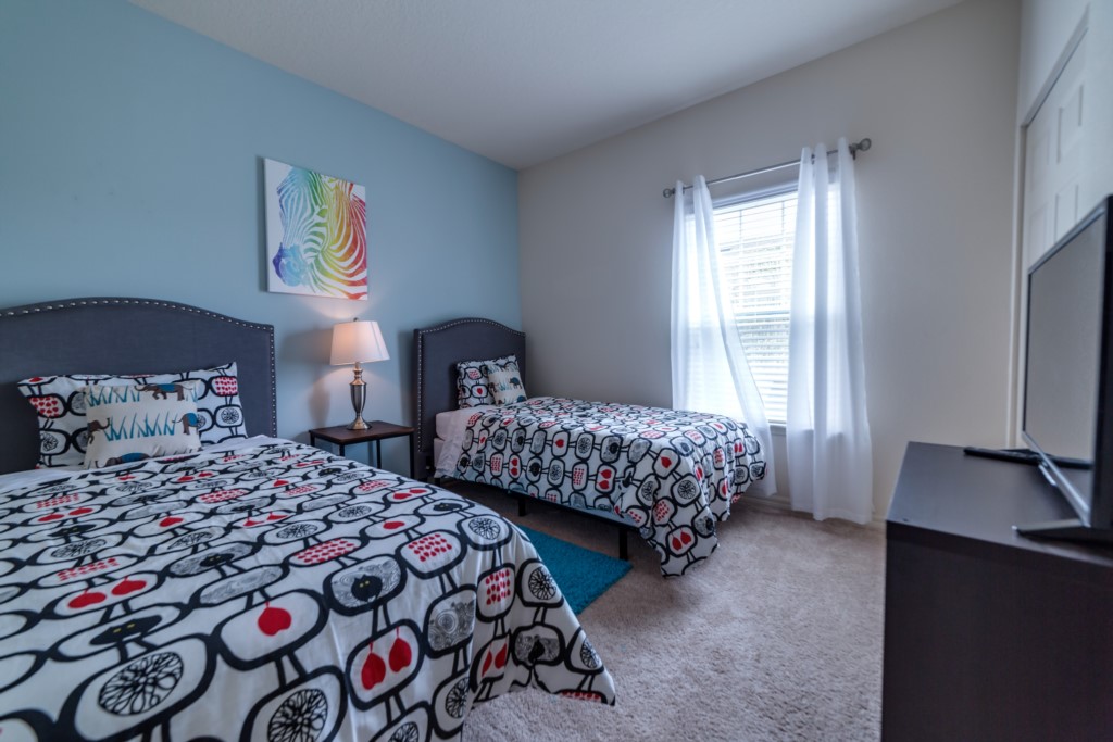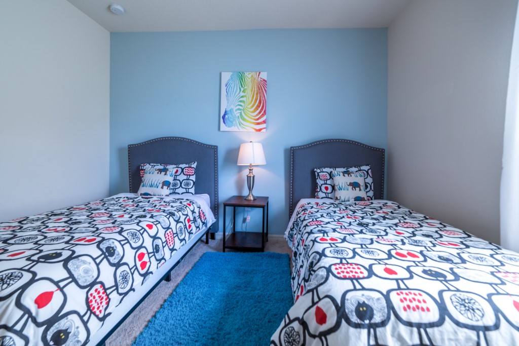 This inviting four-bedroom, 3-bath town home in West Lucaya Village Resort features two king master suites, Mickey-themed full bedroom and a Finding Dory-themed twin bedroom.  With over 1,600 square feet of living space, you’ll be able to really enjoy your vacation without being in a cramped hotel.  All of the bedrooms offer a 32” LCD TV/DVD, dresser and closet.  We offer living area, fully equipped kitchen, dining area and complimentary Wi-Fi access.
