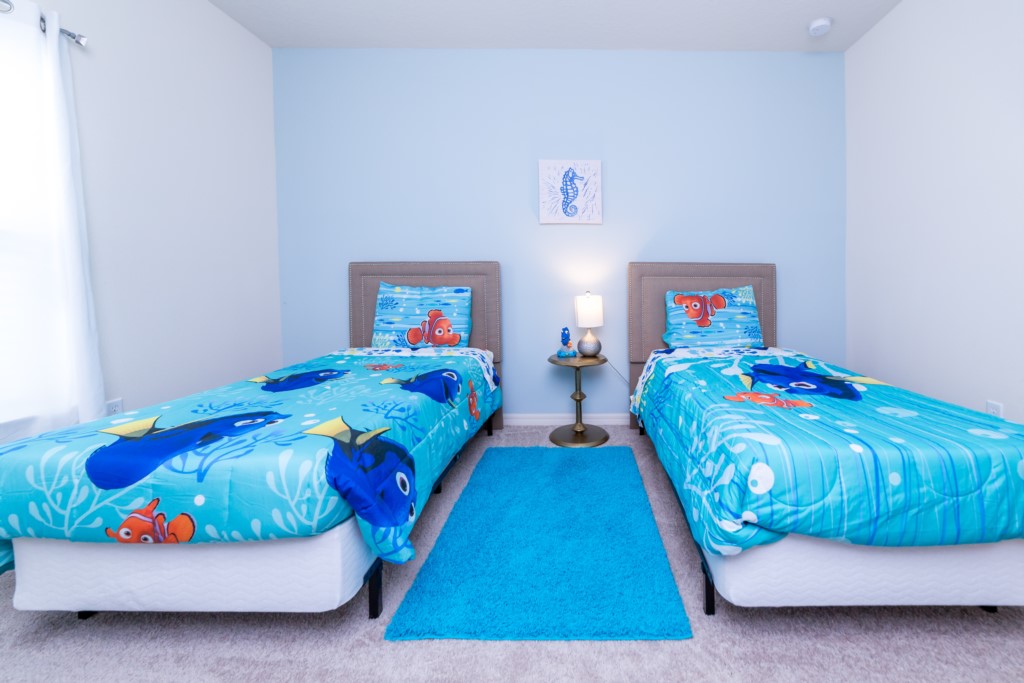 This inviting three-bedroom, 2-bath town home in West Lucaya Village Resort features a king master suite, queen bedroom and a Nemo-themed double full bedroom.  With over 1,300 square feet of living space, you’ll be able to really enjoy your vacation without being in a cramped hotel.  All of the bedrooms offer a 32” LCD TV/DVD, dresser and closet.  We offer living area, fully equipped kitchen, dining area and complimentary Wi-Fi access.