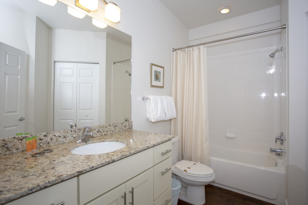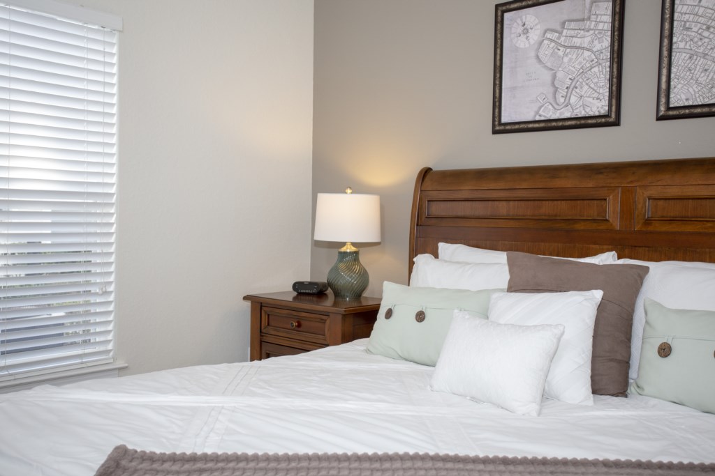 With first-rate community amenities, you'll have plenty of activities to choose from each day. Cool off over at the shared swimming pool, or relax after a long day walking around theme parks in the shared hot tub. The clubhouse at Lucaya Village also has a fitness center, kids' playroom, volleyball court, snack bar, and a nice pond with walking paths and an awesome BBQ grill area with tables around and everything you need to enjoy the BBQ.