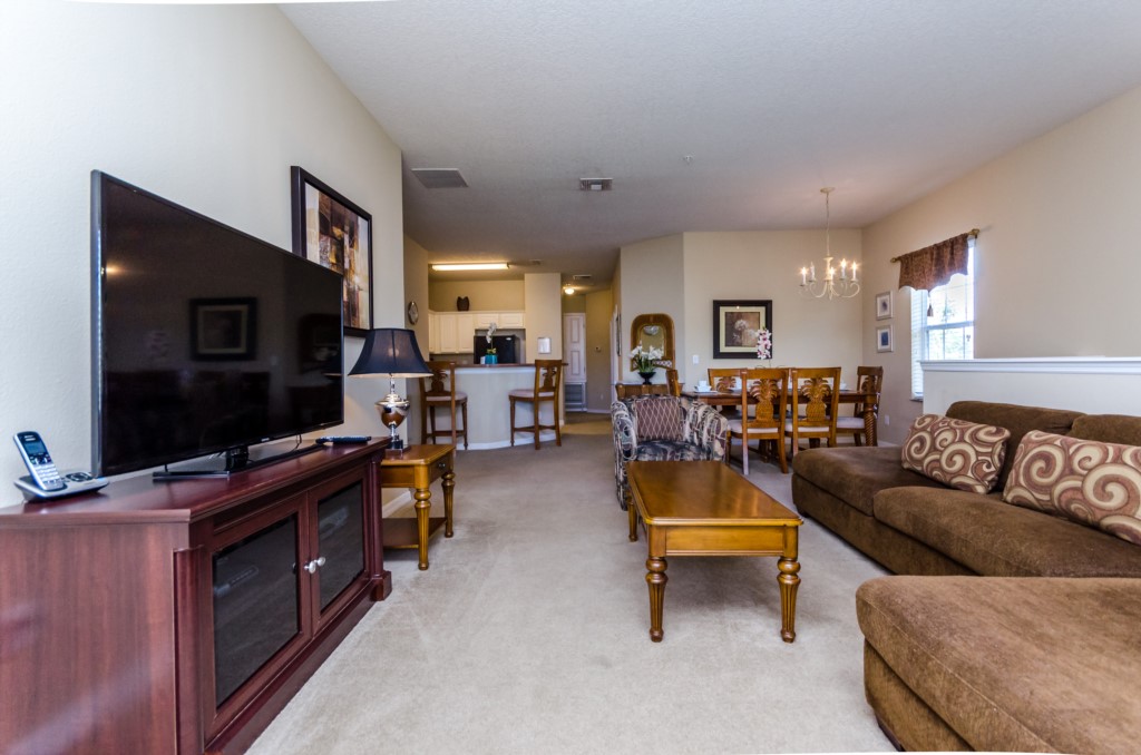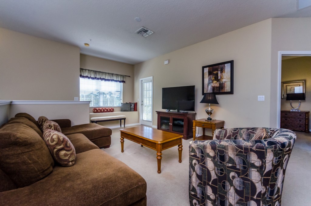 The large family room has a 55” SMART TV, and direct access to the terrace.