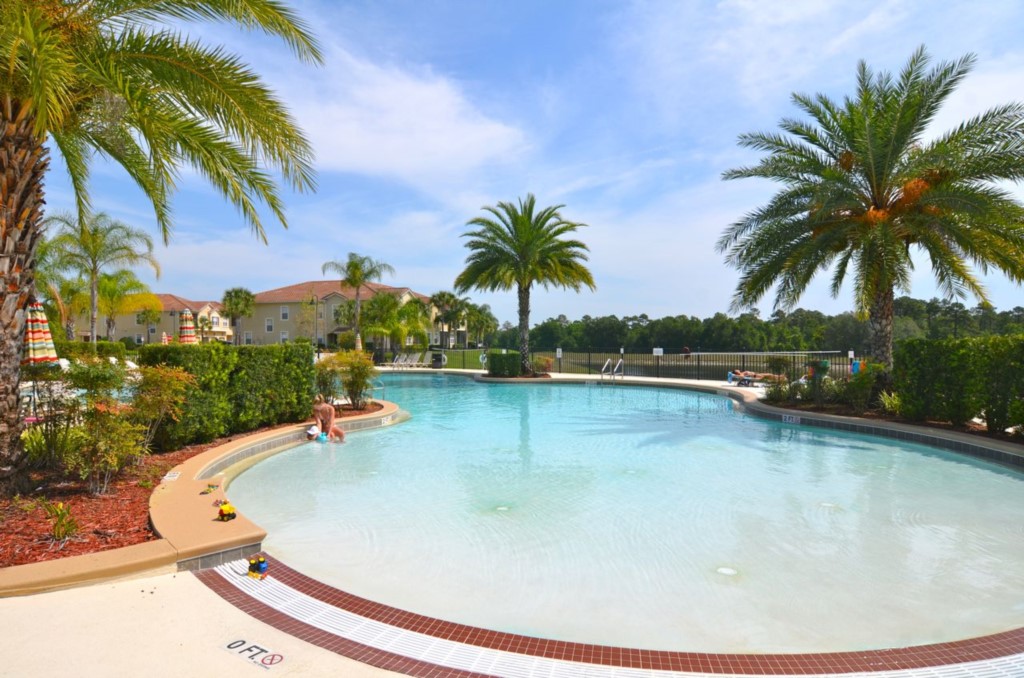 Some of the many features to enjoy in this gated community include a luxurious lagoon-style pool and a separate bubbly hot tub. A children’s splash area, children’s adventure playground, tennis, basketball and sand volleyball courts are all located amidst lush tropical landscaping.