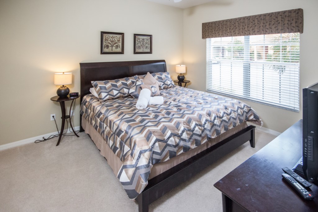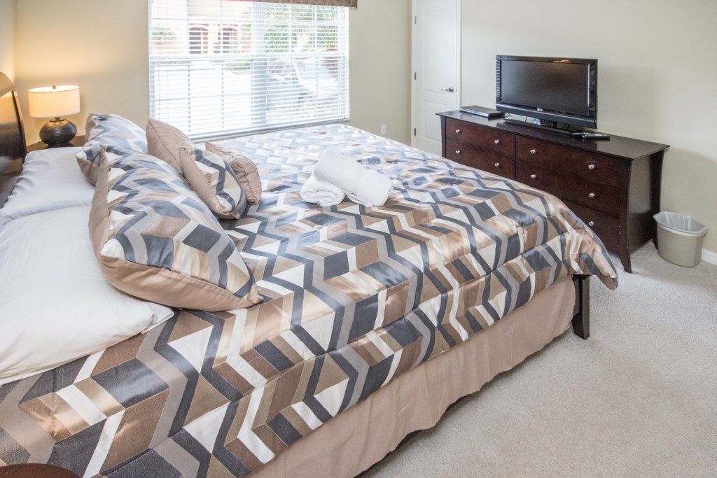 Its large living room has comfortable seating and a 42” flat screen TV for your entertainment. Dine in the formal dining room that can comfortably seat 6 people or grab a quick bite at the modern and spacious breakfast bar that seats 4 people. Enjoy cooking? You’ll love the modern kitchen that is fully equipped with stainless-steel appliance, granite countertops, and all the utensils and equipment you need to prepare your meal. There are four bedrooms. The master bedroom has a king-size bed, 26” inch flat screen TV, and en-suite bathroom. The second bedroom has another king-size bed. The third bedroom has a queen-size bed, and the fourth bedroom has a bunkbed (a single and a full).
