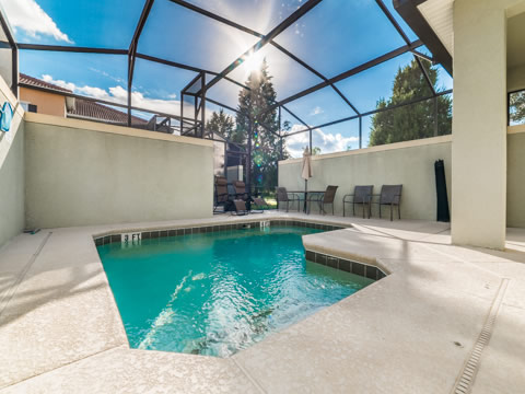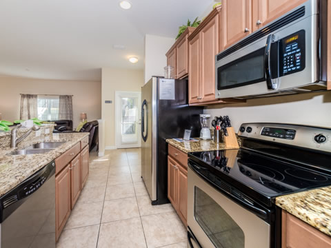 Paradise Palms, known for its fantastic vacation rentals, is just a few miles from all the amenities in Central Florida. Do not miss your chance to be here and stay in this gorgeous townhome. As you enter the home, you are greeted by an open atmosphere where vacation awaits. The large kitchen, with upgraded cabinetry and appliances, along with granite countertops, will be your oasis to cook dinner in, something a hotel just does not offer. The living room is situated around a flat screen TV where the kitchen overlooks. The open and spacious floor plan allows the whole family to be together, yet offers plenty of space for everyone. With 5 bedrooms and 4 bathrooms, this home will sleep a total of 8 guests perfectly. Vacation is meant to be a time to relax, so why not have your own bed to do so. On the main floor, there are two bedrooms. One bedroom has a queen while the other has 2 twin beds. As you head upstairs, there are 3 more bedrooms, two bedrooms with a king and one bedroom with 2 twin beds. FREE WIFI is available as well as a washer and dryer for your convenience. And, don’t forget, this home comes with its very own South facing splash pool! Cool off, swim, or just lay by the pool right in your own backyard. Come and stay in the heart of Paradise Palms. The amenities of this resort community are endless with a huge clubhouse, resort pool, slide, sport courts and much more. We can’t wait to see you here!