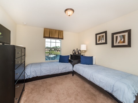 Start your vacation right by staying in this exquisite home located in the gated resort community of Windsor Palms. When entering this home, you automatically get a sense of its openness and brightness. High ceilings and an open concept are themes throughout. The living room is dressed with leather couches, warm colors and everything you need to relax. The 47’ flat screen is perfect for family movie nights. The living room and kitchen both look over the outdoor patio and pool. The kitchen is newly updated with granite countertops, beautiful white cabinetry and stainless steel appliances. In this rental, you have all the conveniences of home with the luxury of vacation. This home also has a dining room and breakfast bar which collectively seat a total of 9 guests. The 5 bedrooms and 3.5 bathrooms are large and spacious which match the rest of the home perfectly. With 1 king bedroom, 2 queen bedrooms and 2 rooms with 2 twins in them, these rooms sleep a total of 10 guests perfectly. The best room is easily the Harry Potter themed room which will bring out the inner wizard in you! Free WiFi and a washer and dryer are also there for you to use at your convenience. Last but not least, head to the game room to enjoy the entertainment. Air hockey and billiards are in the game room and the pool and spa are out back. Spend all day in the sun and enjoy all of what Florida has to offer. Book your stay today!