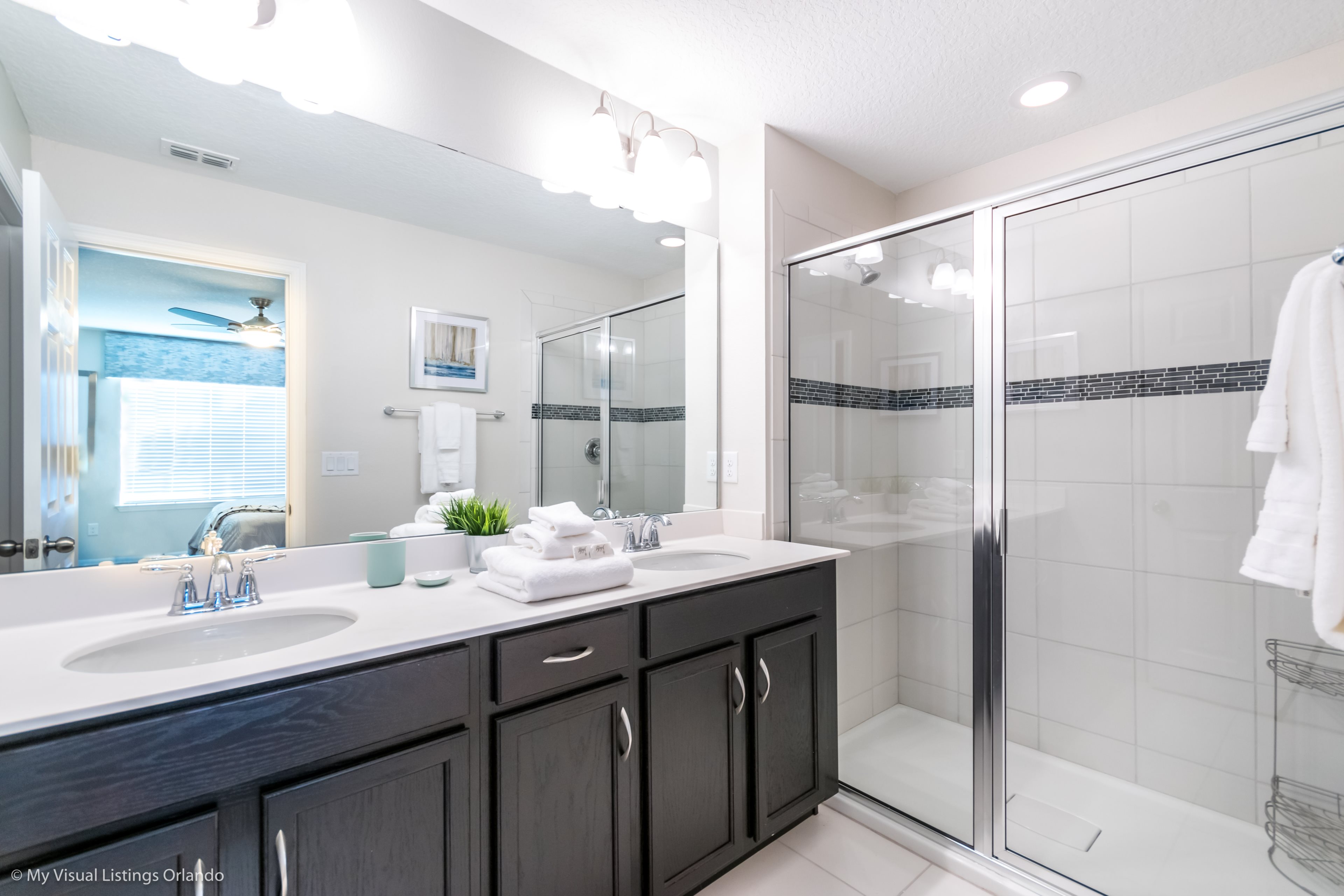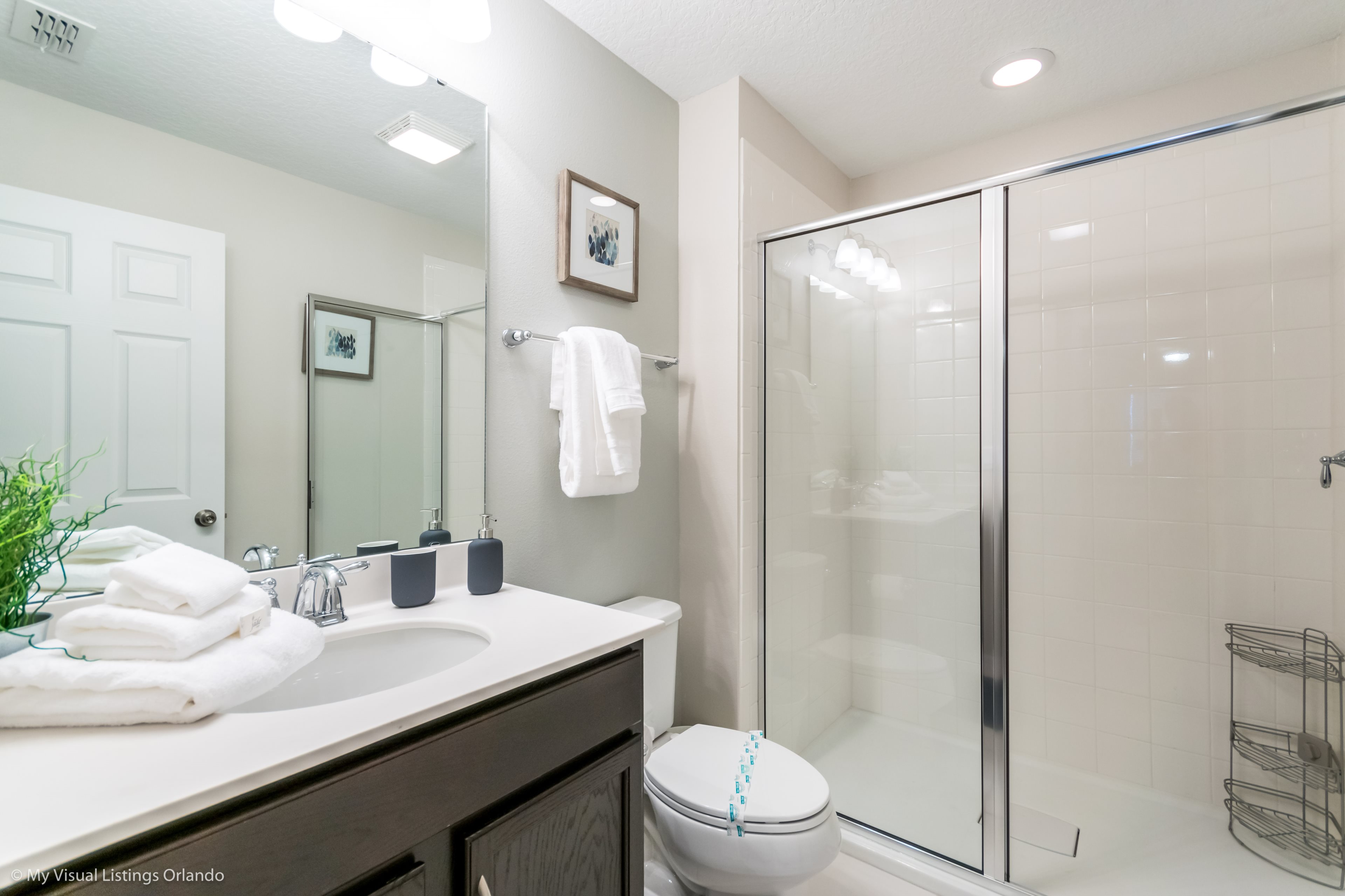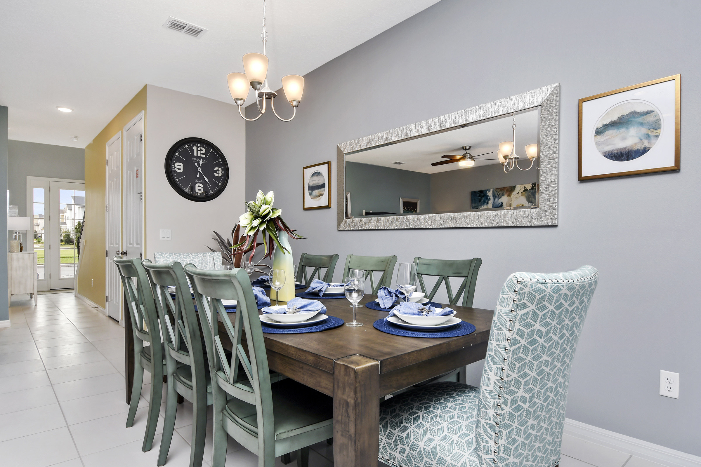 "Be Our Guest" in this beautiful 4 bedroom, 4-1/2 bath townhome newly built in 2018. Professionally decorated by one of Orlando's best interior decorators with all the comforts of home and more. The spacious home includes a modern kitchen with new stainless steel appliances and granite counter tops to cook your home-made meals. Enjoy family meals together, dining table seats 8 with additional seating for 4 at the breakfast bar; we also include a high chair for your little one to dine! All cookware and utensils are provided for your convenience.