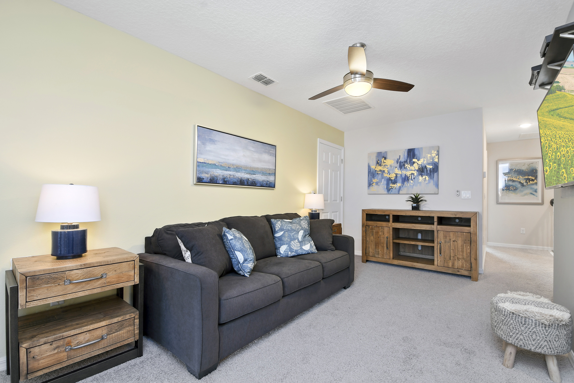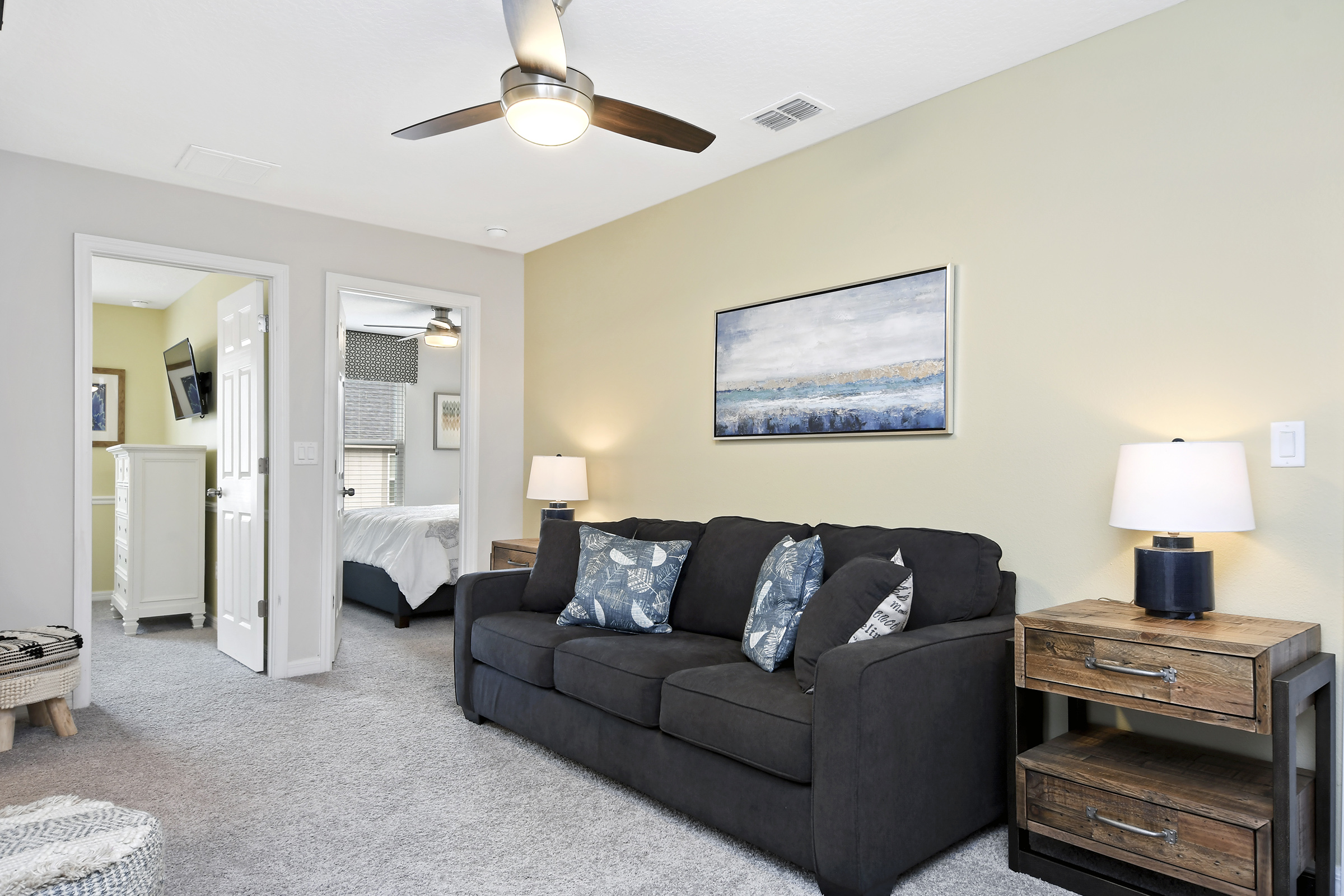 1 additional bedroom with 1 full-size bed and 1 twin-size bed with the Mickey theme that the kids will enjoy. The Mickey themed bedroom shares a hall bathroom with the loft area.