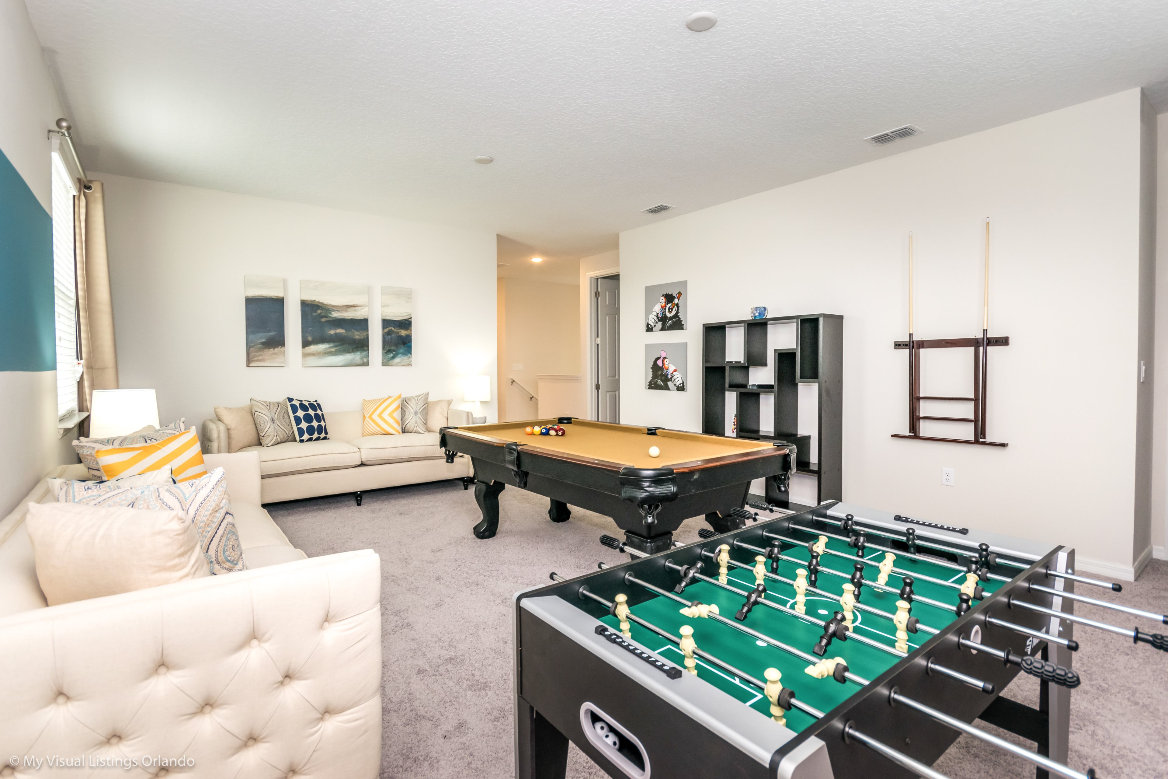 You can also enjoy a game of pool in the games room, or the adults can all watch a movie or a sports game together in the spacious lounge , while the kids watch their own show in the upstairs loft area