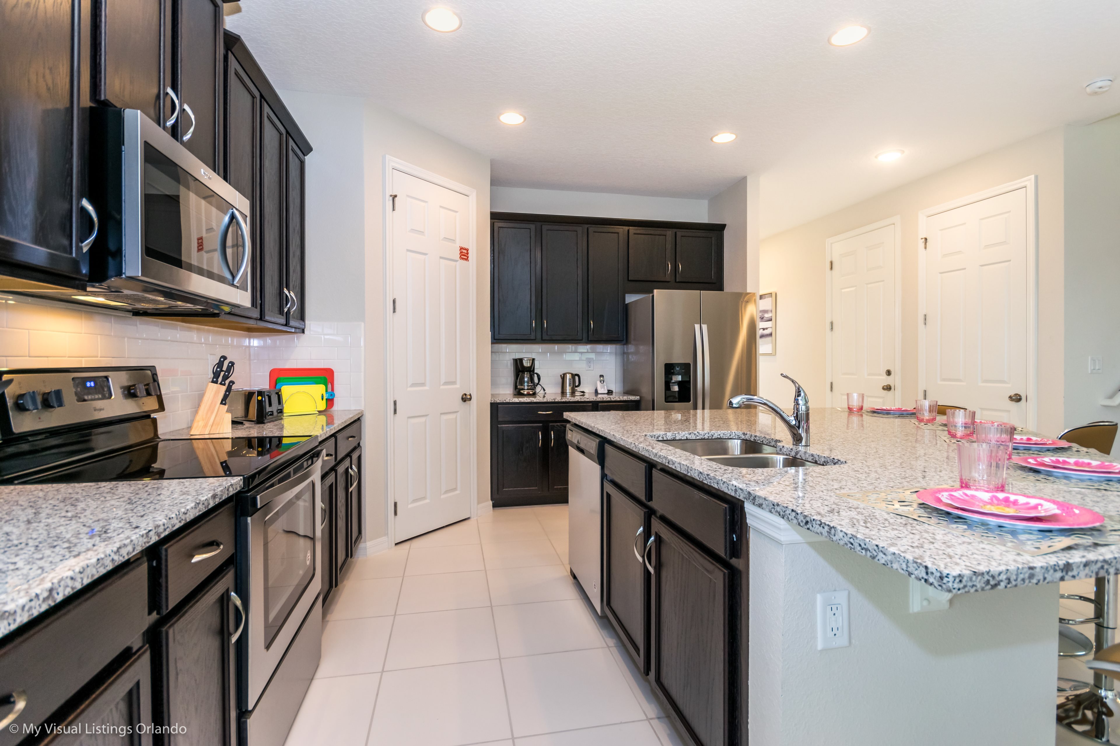 We invite you to enjoy our wonderful home on your next trip to Orlando. Absolutely perfect for multi-family groups, or golf groups, this property features all the comforts of home and more! Book your vacation now at this beautiful home with pool and spa located in the gorgeous Solaora Resort. Plus as our guest you get to enjoy all the amenities of the resort such as the lazy river, splash pool for the kids, 2 other large pools, tennis courts, fully equipped exercise room, on site cinema, arcade games, and family restaurant.