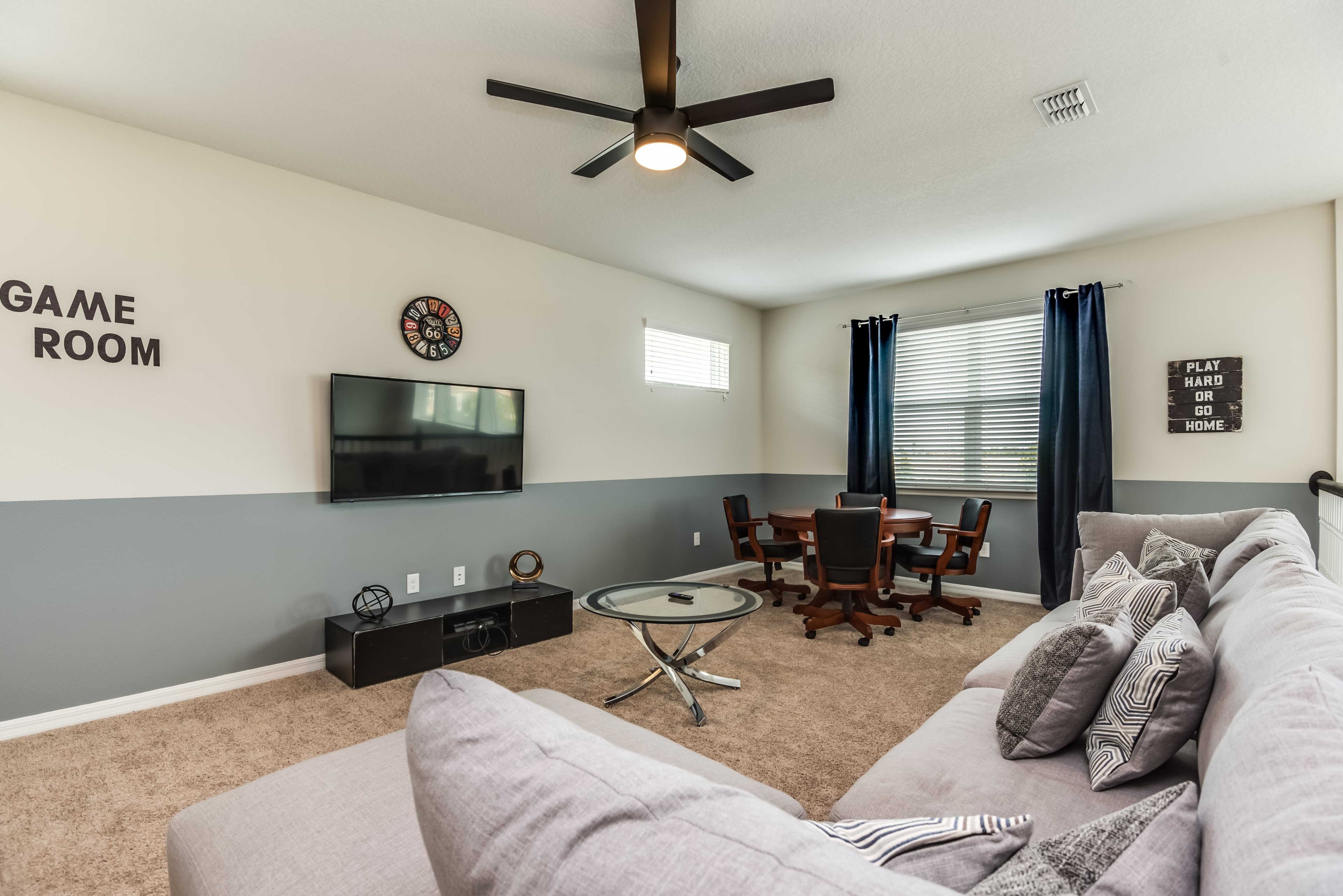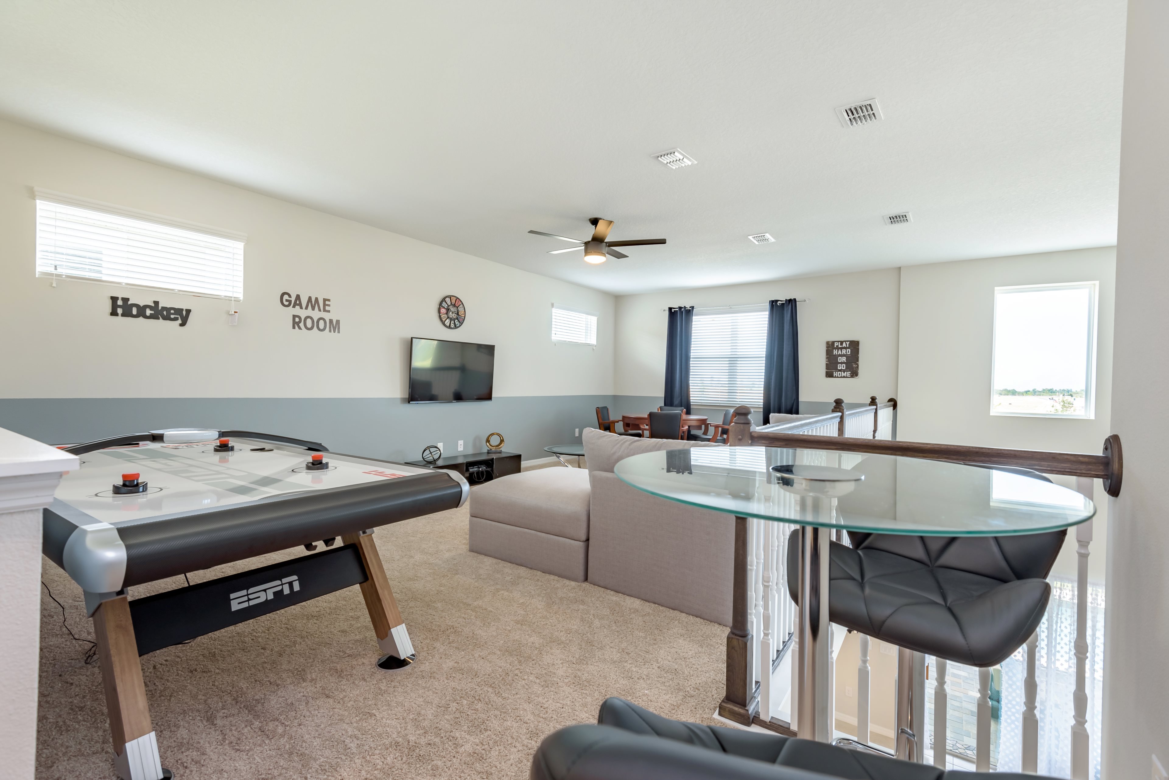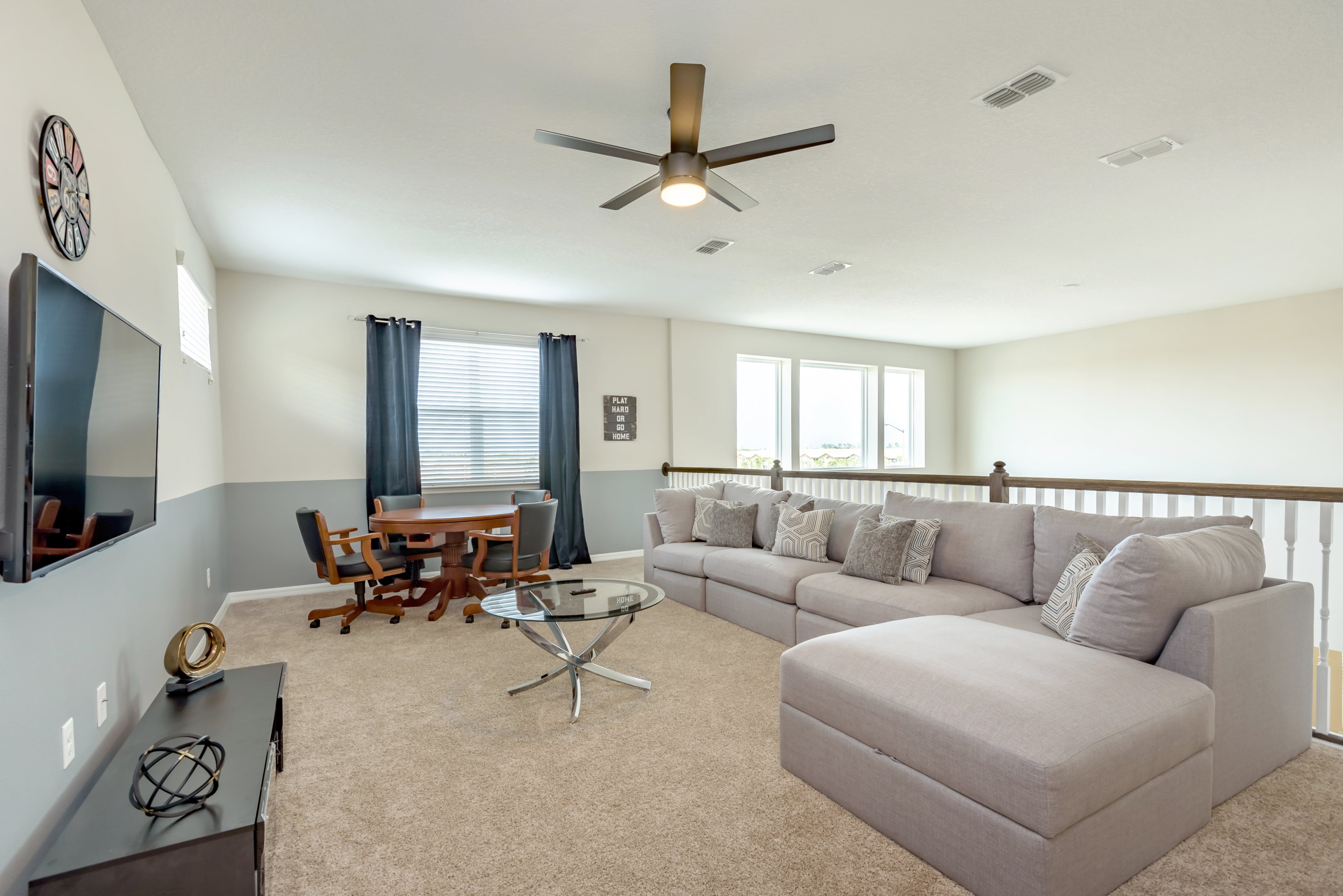 We invite you to enjoy our wonderful home on your next trip to Orlando. Absolutely perfect for multi-family groups, or golf groups, this property features all the comforts of home and more! Book your vacation now at this beautiful home with pool and spa located in the gorgeous Solaora Resort. Plus as our guest you get to enjoy all the amenities of the resort such as the lazy river, splash pool for the kids, 2 other large pools, tennis courts, fully equipped exercise room, on site cinema, arcade games, and family restaurant.