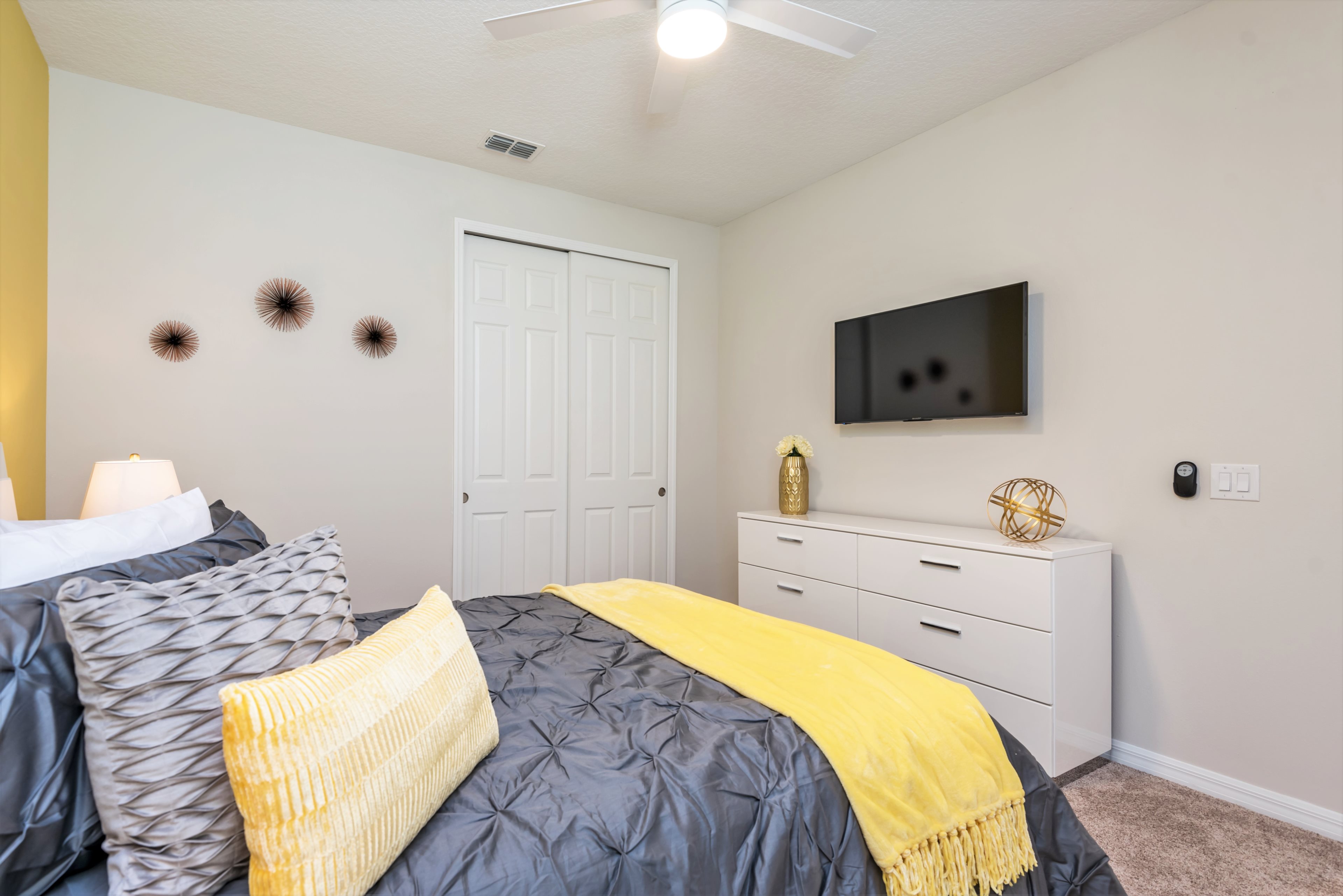Solara is one of Kissimmee’s newest and most luxurious resort community. An extraordinary 5,000 sq.ft. clubhouse is the centerpiece, as well as a huge resort-style pool, complete with cabanas, a water slide, and lazy river – perfect for families to enjoy for hours! When it’s time for a drink or a bite to eat, the tiki bar serves both your favorite libation, along with a tempting menu for poolside dining. With all the latest in cardio and strength building equipment, the fitness center will keep you in shape while on vacation. For some friendly competition, there are sand volleyball courts and a multi-purpose sports courts. In addition, a sundry shop is located in the clubhouse, along with a video arcade. Solara is a gated community, with an attendant, to ensure the safety for all our visiting guests.
