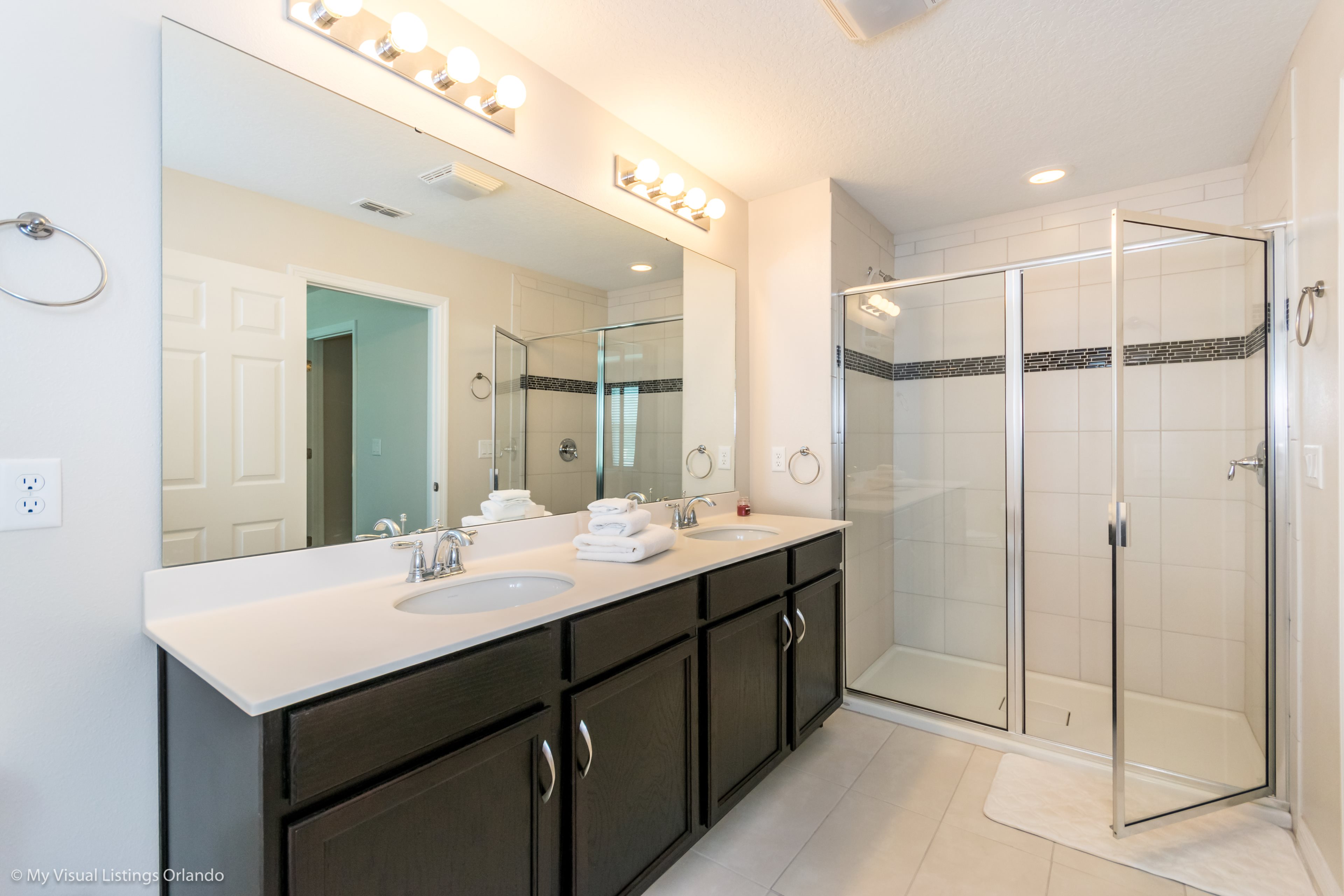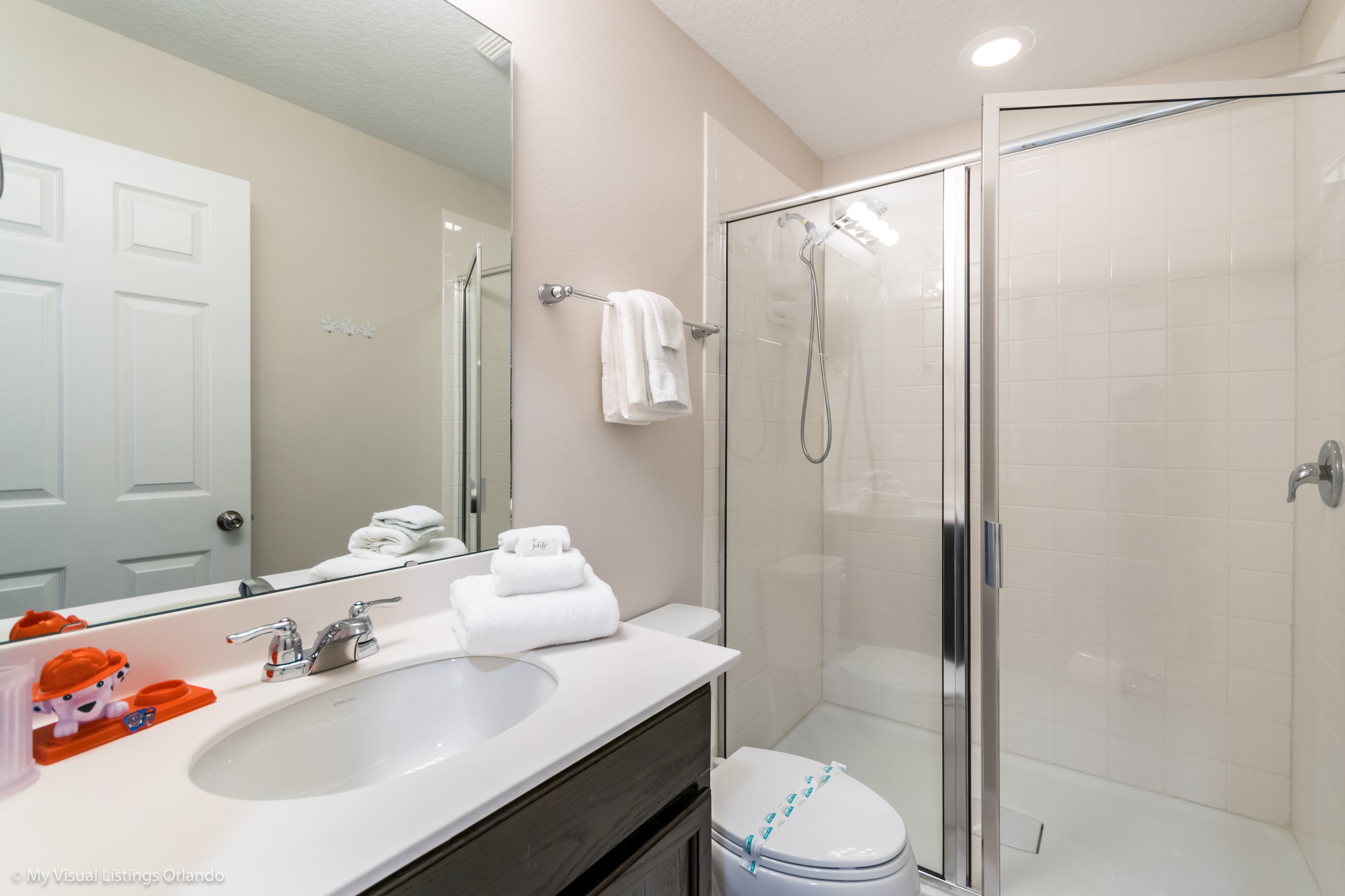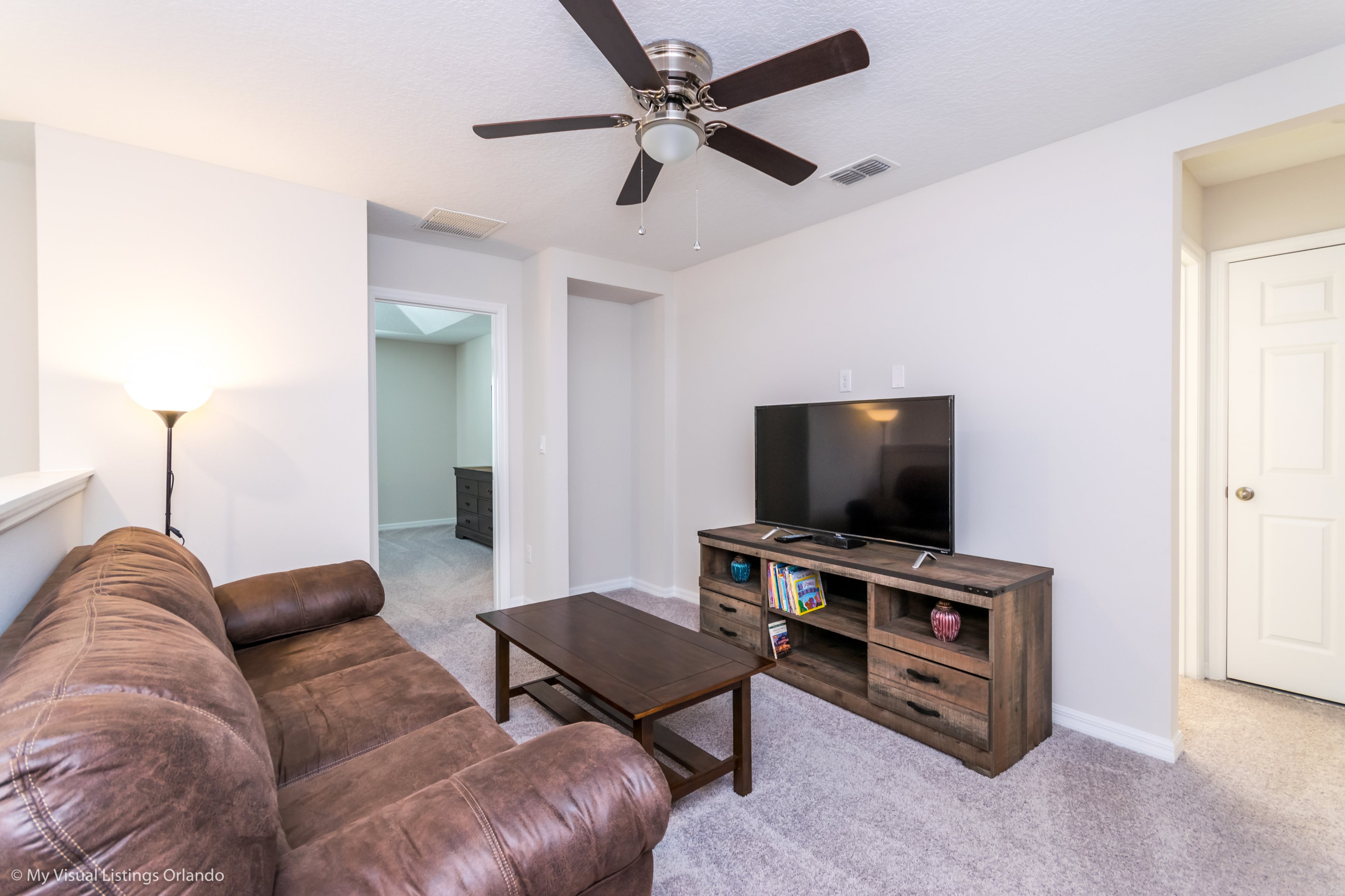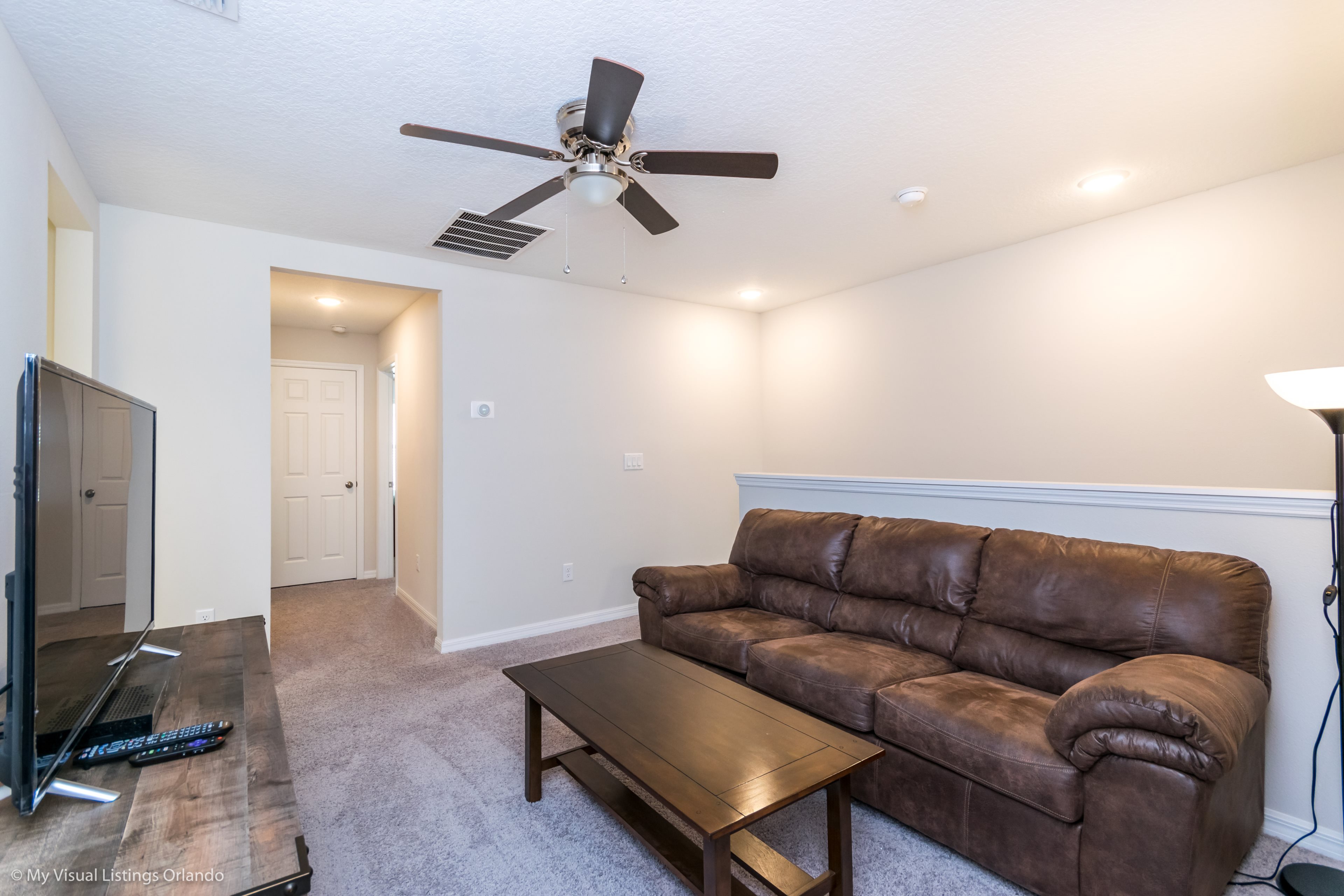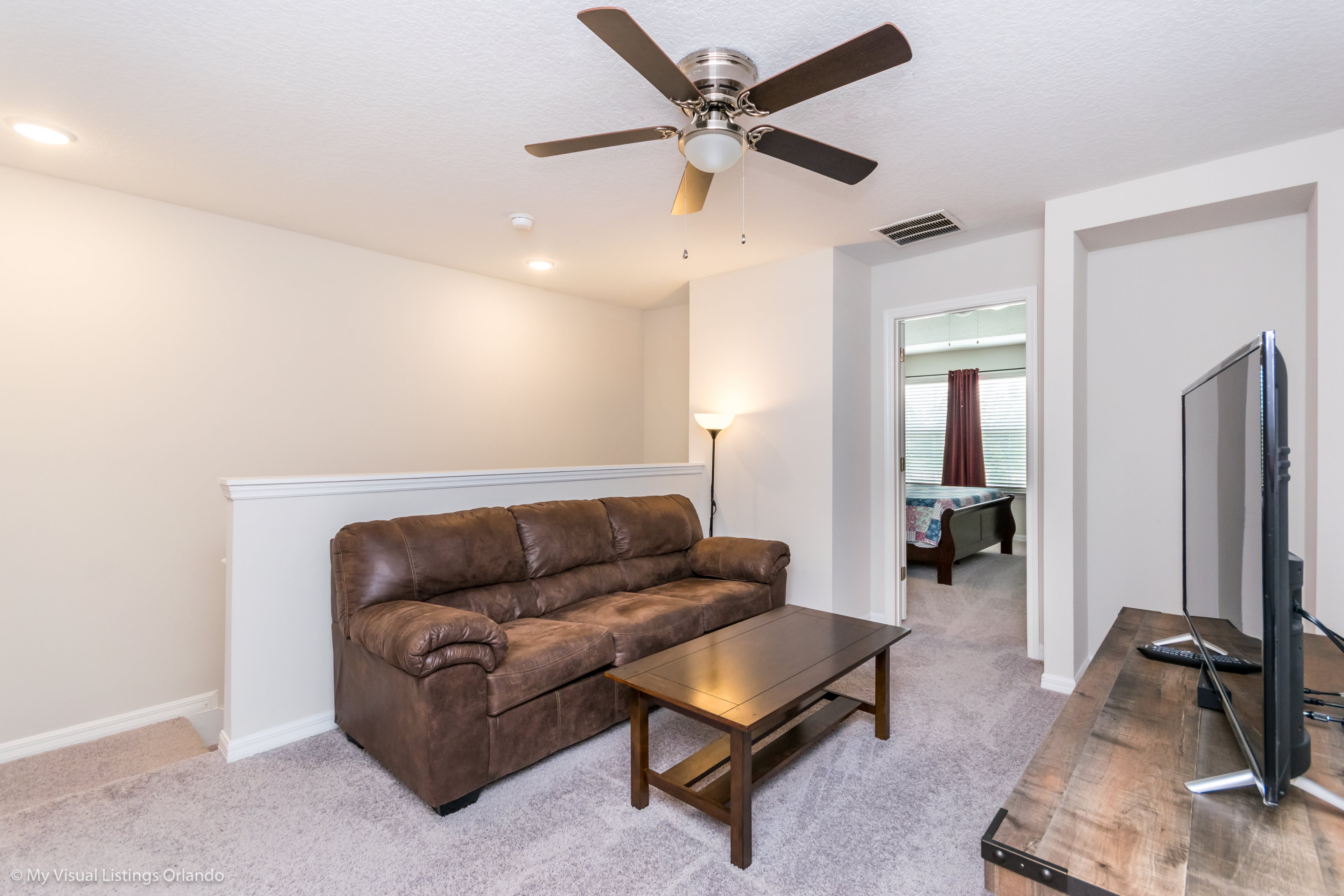 Lounge around after a long day at the parks in the open floor plan gathering room featuring 2 sofas and a large 50-inch flat screen TVr. Step outside onto the patio to enjoy your very own private Splash Pool with screened enclosure that also has a 1/2 bath.