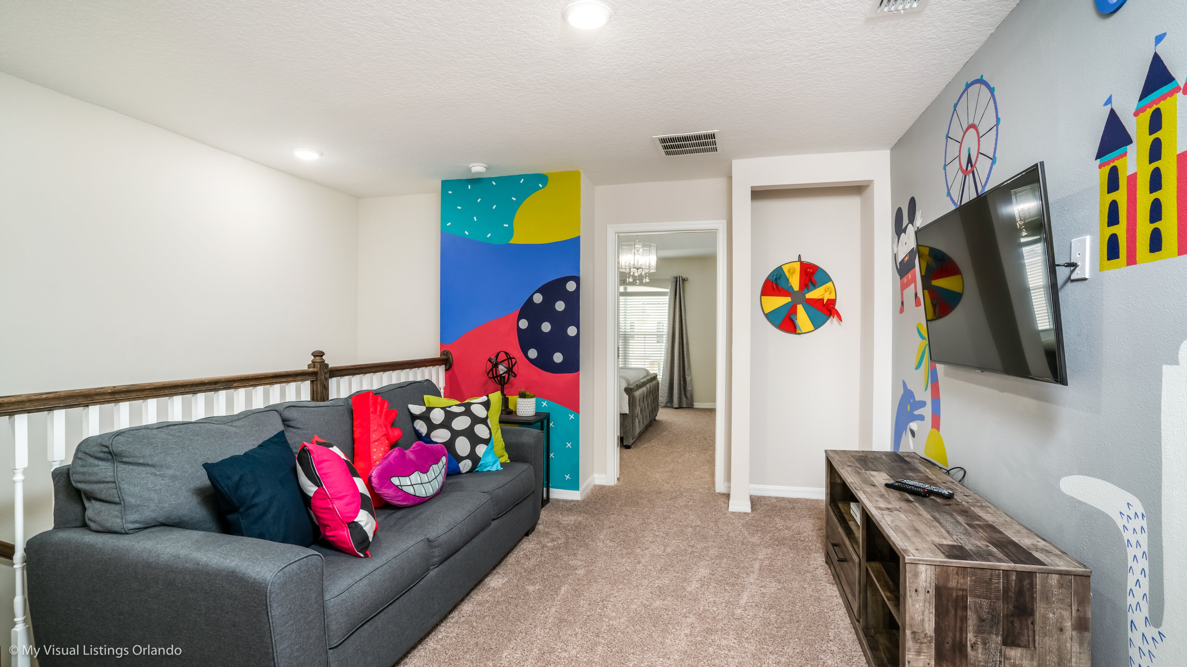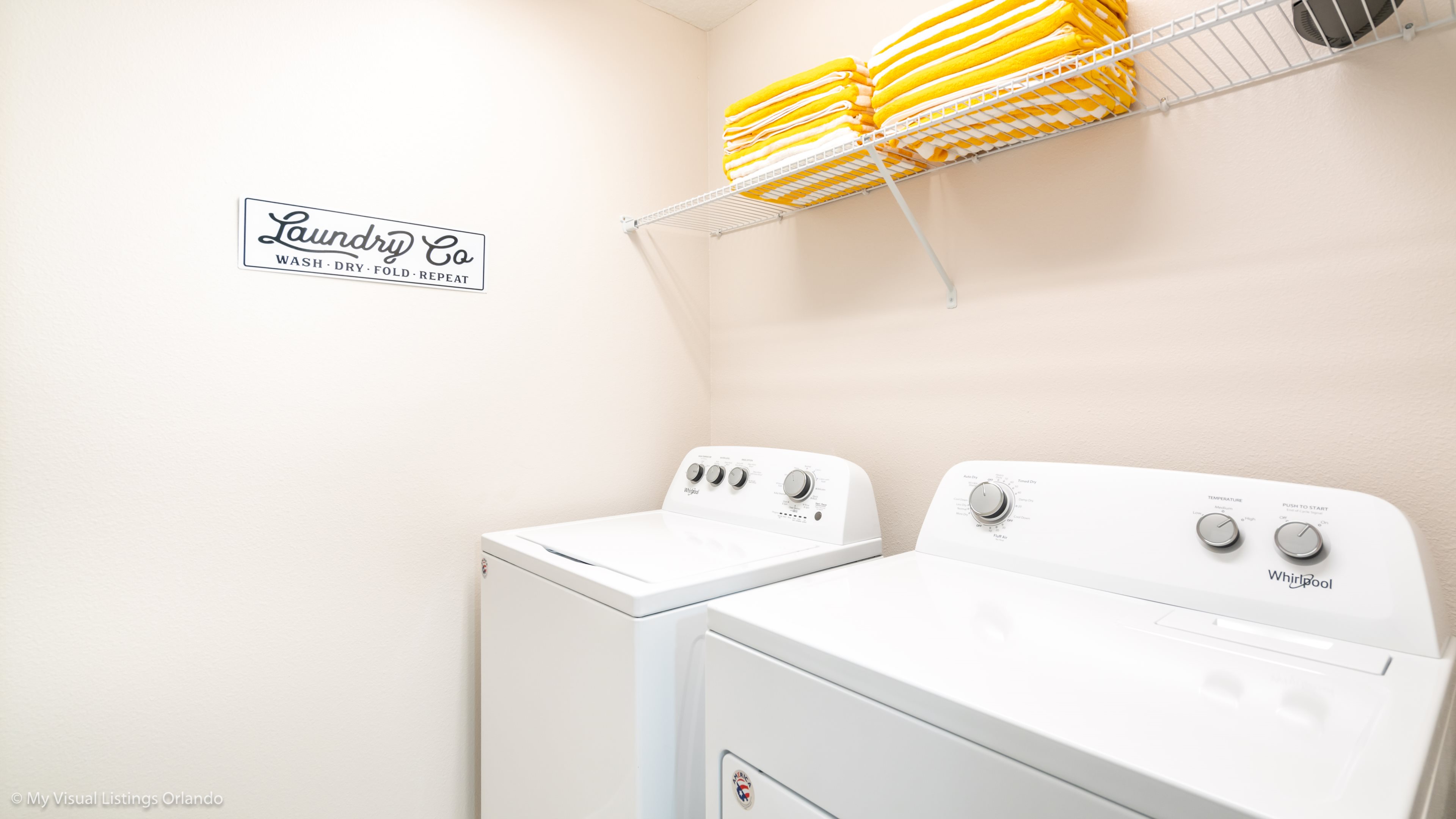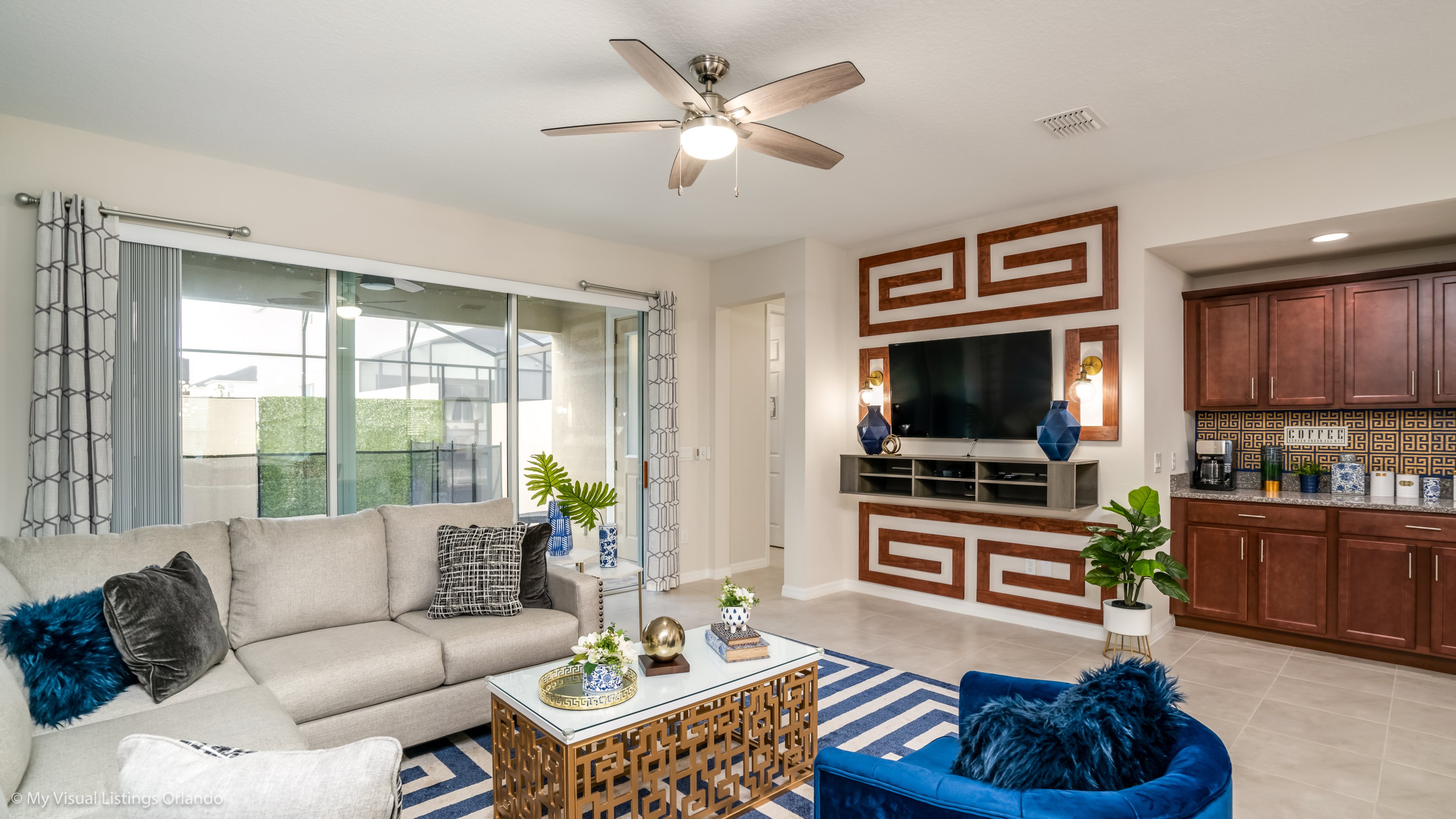 Lounge around after a long day at the parks in the open floor plan gathering room featuring 2 sofas and a large 50-inch flat screen TVr. Step outside onto the patio to enjoy your very own private Splash Pool with screened enclosure that also has a 1/2 bath.