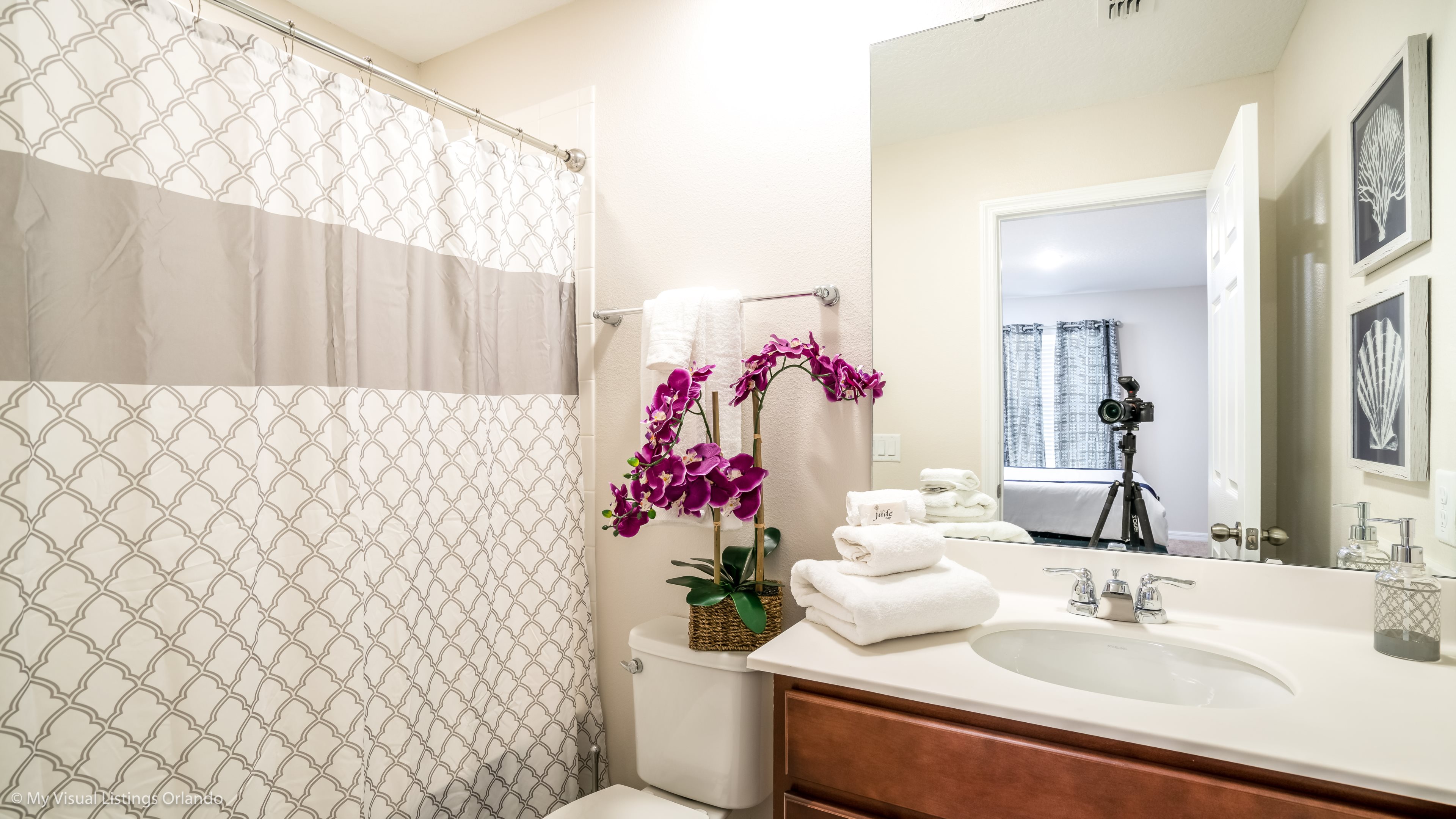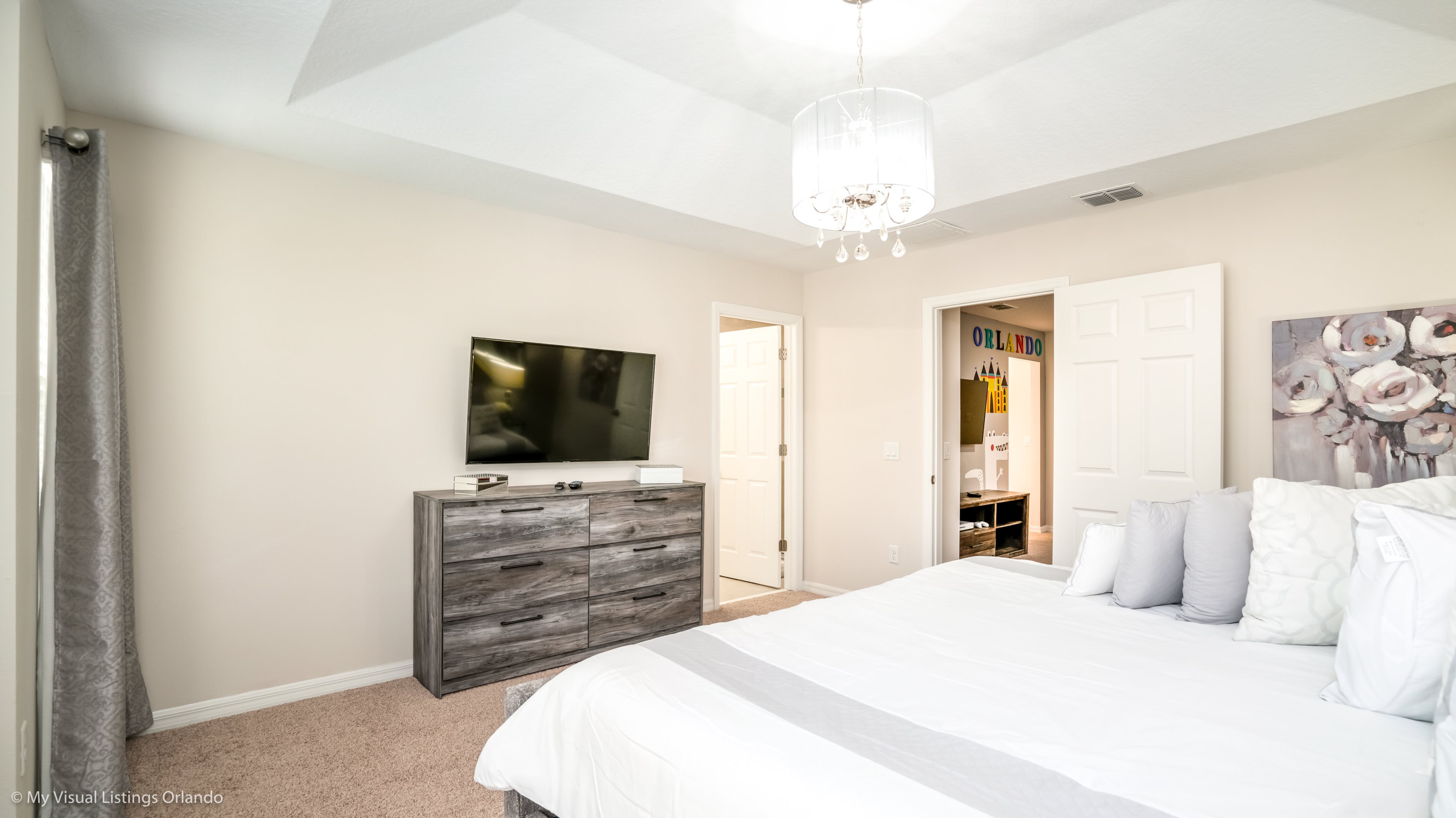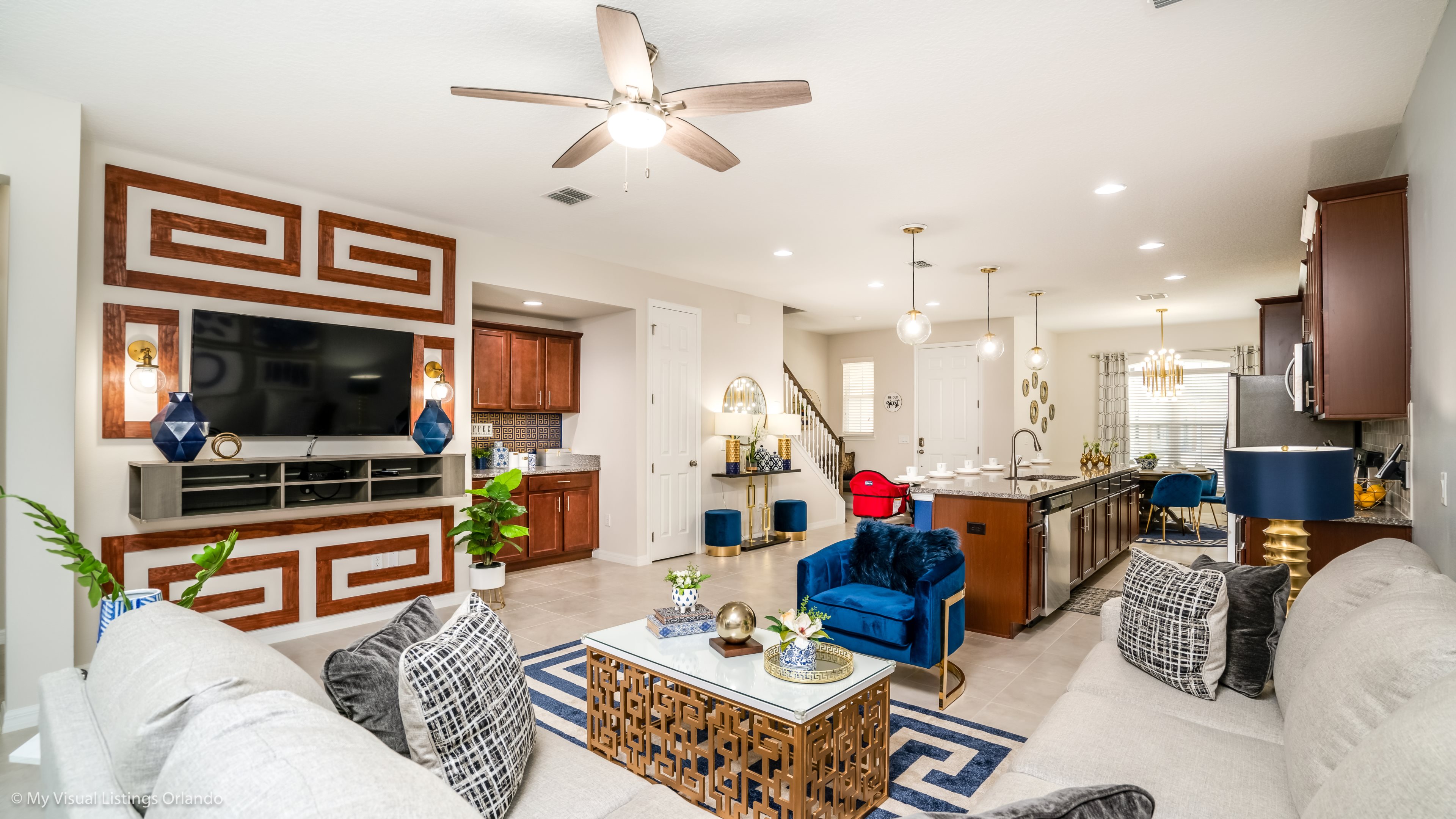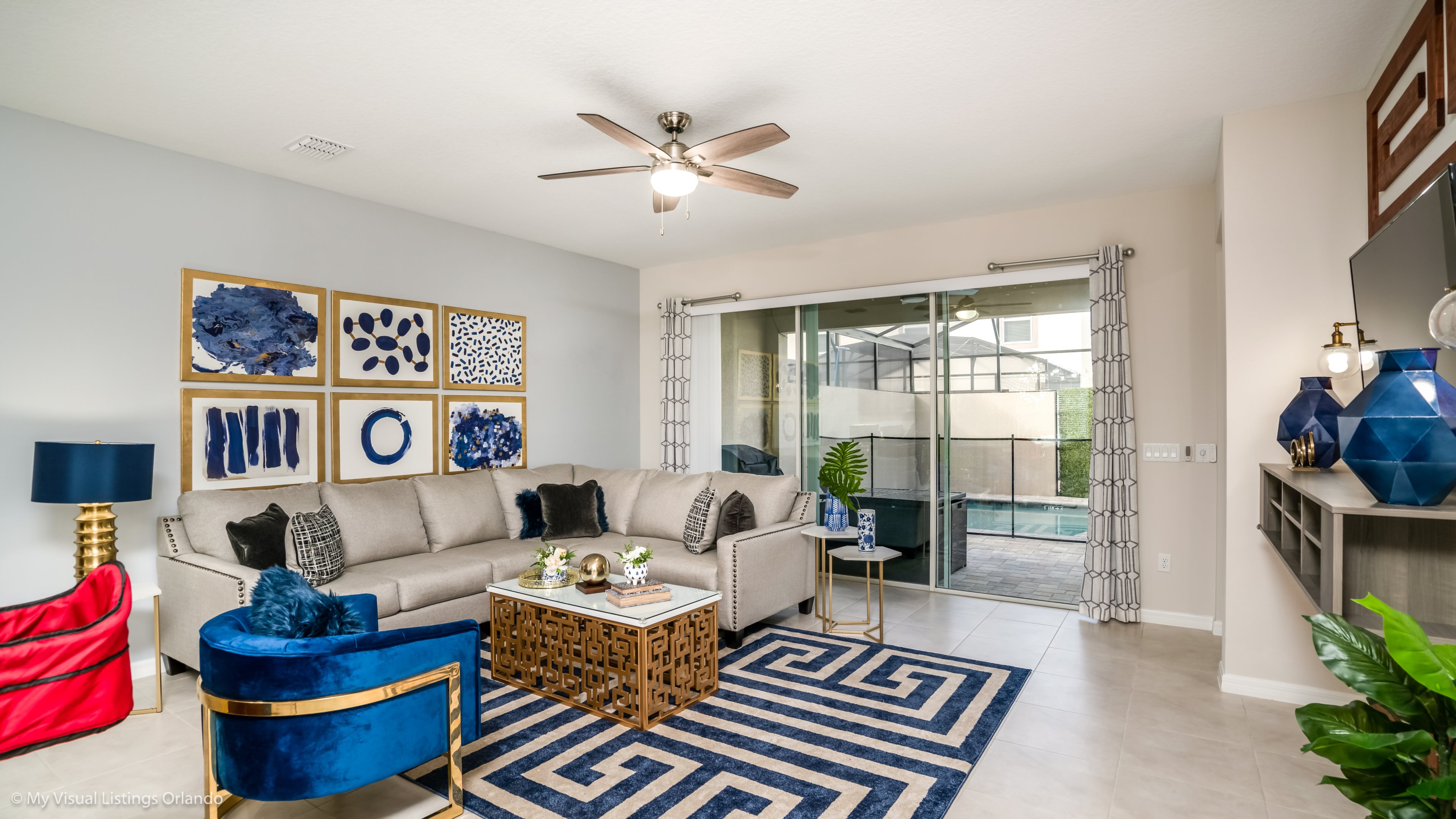 Lounge around after a long day at the parks in the open floor plan gathering room featuring 2 sofas and a large 50-inch flat screen TVr. Step outside onto the patio to enjoy your very own private Splash Pool with screened enclosure that also has a 1/2 bath.