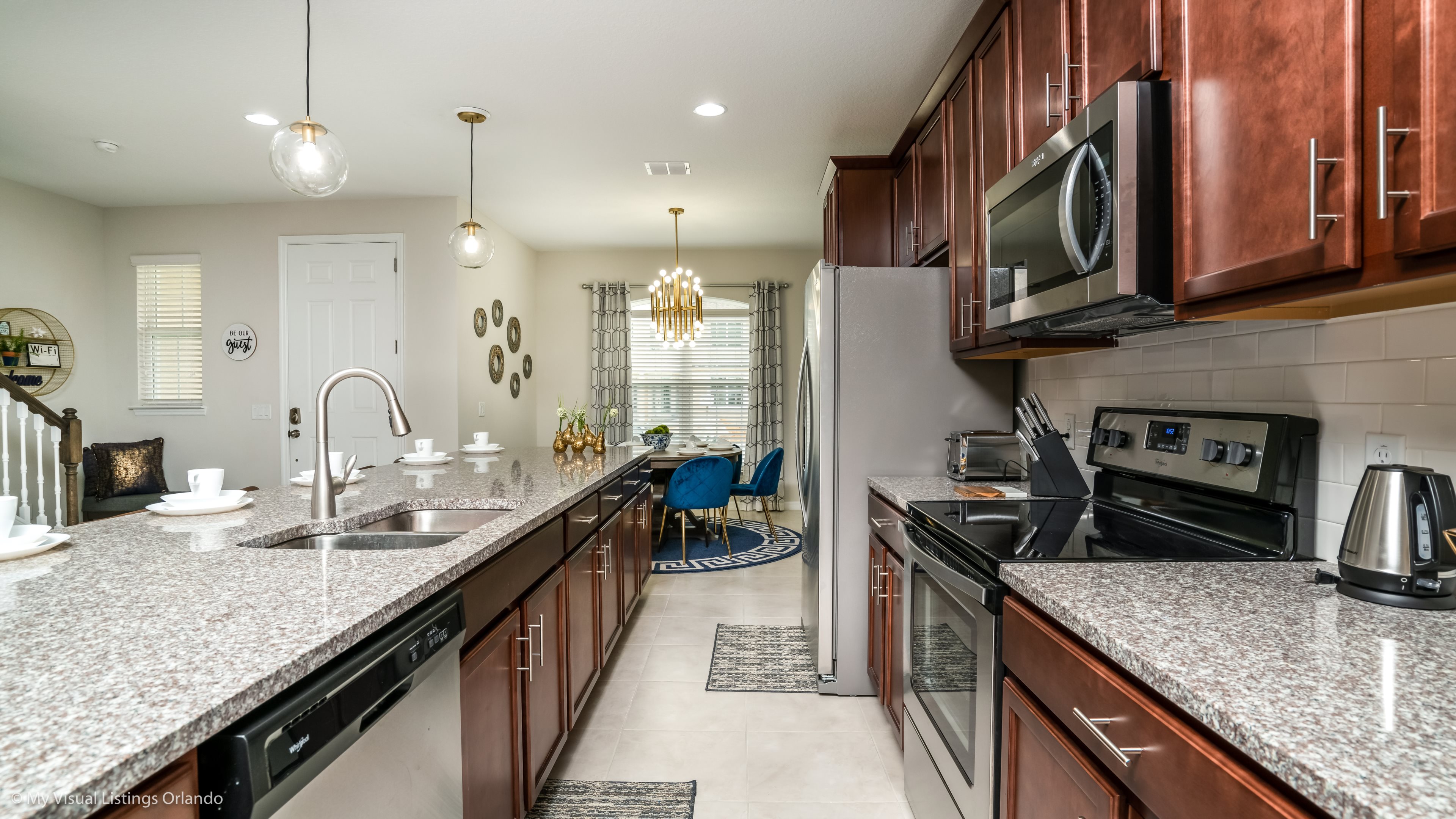 This beautiful 3 bedroom, 3 1/2 bath townhome was built in 2018 and is professionally decorated with all the comforts of home. The spacious home includes a modern kitchen with new stainless steel appliances and granite counter tops. There is dining seating for 8 and additional seating for 6 at the breakfast bar; we also include a high chair for your little one to dine! All cookware and utensils are provided for your convenience.