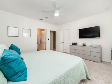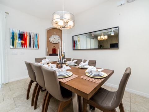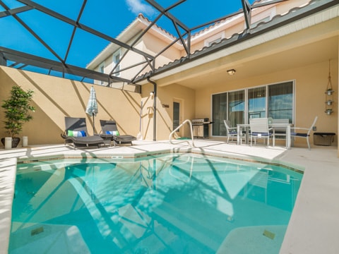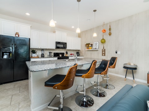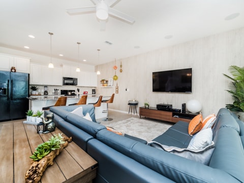 When a vacation is much needed, this home is waiting for you and all of your guests. Welcome to the gated resort community of Solterra where your dream vacation is waiting! This particular townhome has 4 bedrooms and 3.5 bathrooms, all of which are private and perfect for you. The living room has a wraparound couch, 60” TV, and the best view of the private pool - a perfect place to rest and relax. The kitchen overlooks the living room and is new with granite countertops, upgraded cabinetry and so much more! This kitchen is truly the heart of the home boasting all the luxuries of vacation with the comforts of home. Be sure to enjoy your family meals at the dining table, adjacent to both the kitchen and living room. Each bedroom has unique features which makes them the perfect place to call home for your vacation. With 2 king bedrooms, and 2 rooms with twin over double bunks, you’re sure to get the perfect nights rest each night of your stay. The private pool is also the best spot to enjoy the warm Florida sun. From splashing around to tanning, you’ll feel as though you’re a local Floridian. This home comes with all the conveniences of home too like a washer and dryer as well as free WiFi. Do not forget to head over to the Solterra clubhouse which is complete with a lazy river, huge pool, and so much more. Book your stay today and let the vacation begin!