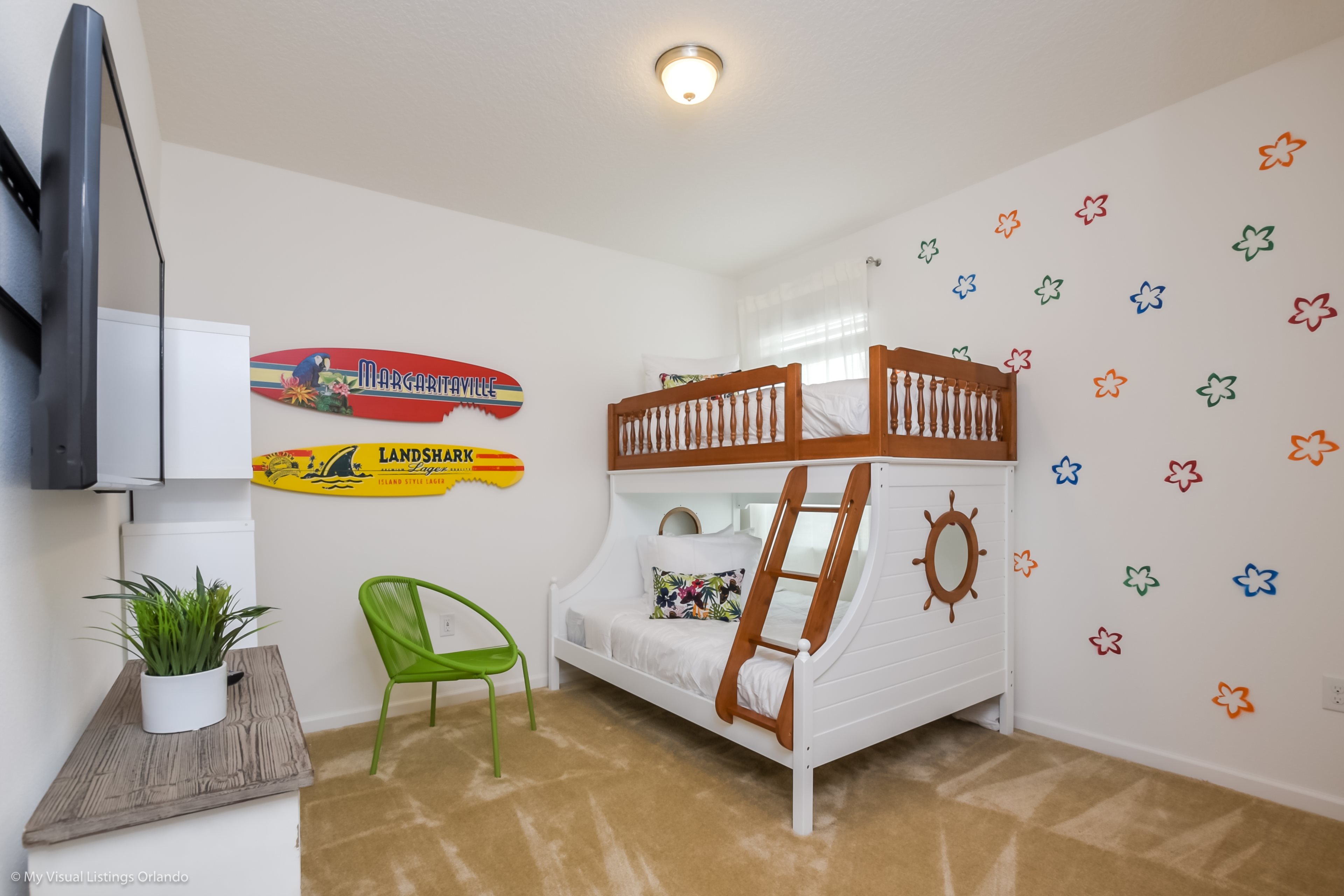 Bedroom 7: 1 twin bed and 1 twin bunk bed plus 1 twin mattress underneath - children's decor -