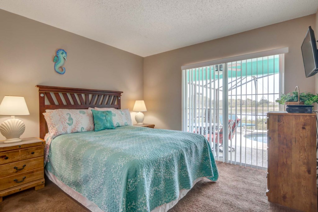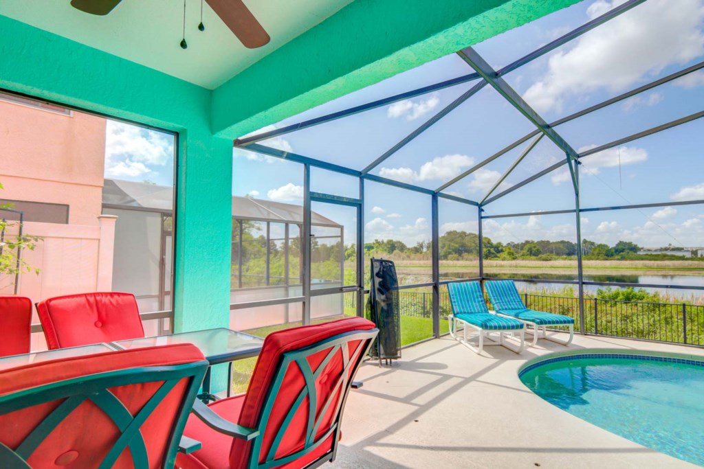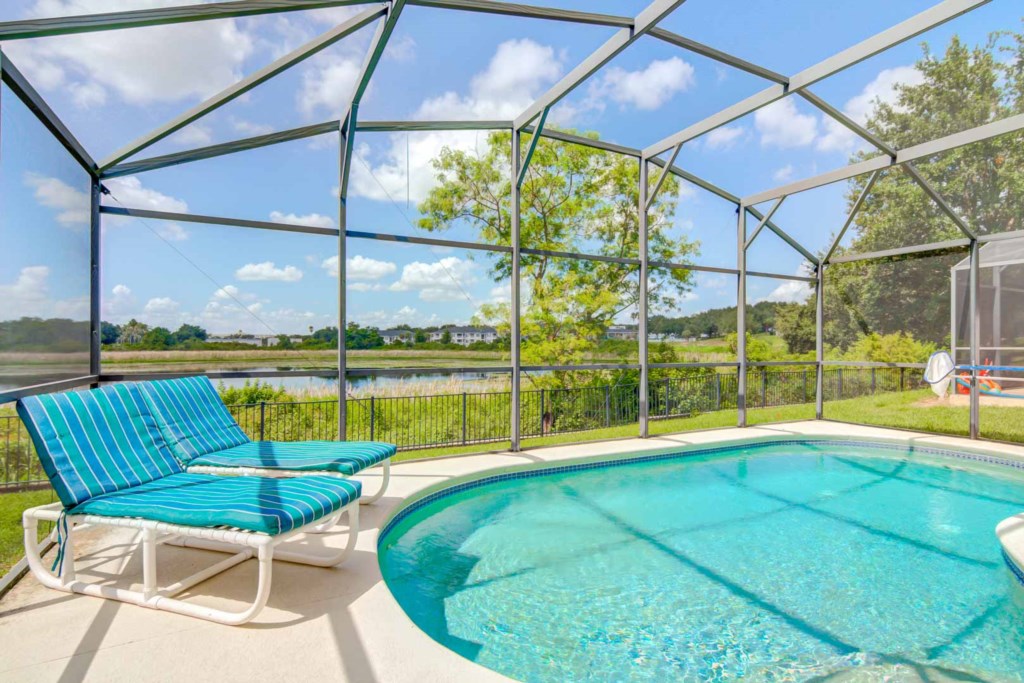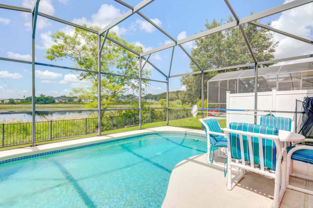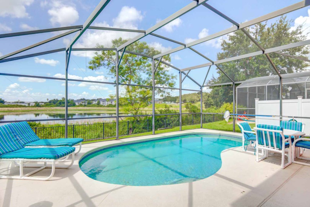 The best part of the house would definitely have to be the pool and pool deck. It has a screen enclosure to help keep the bugs out but still let the Florida sunshine in. The pool faces to the west and backs up to Lake Joe, which makes for a breathtaking view of the Florida sunset. Pool Heat is available during the fall and winter months, for an additional fee.