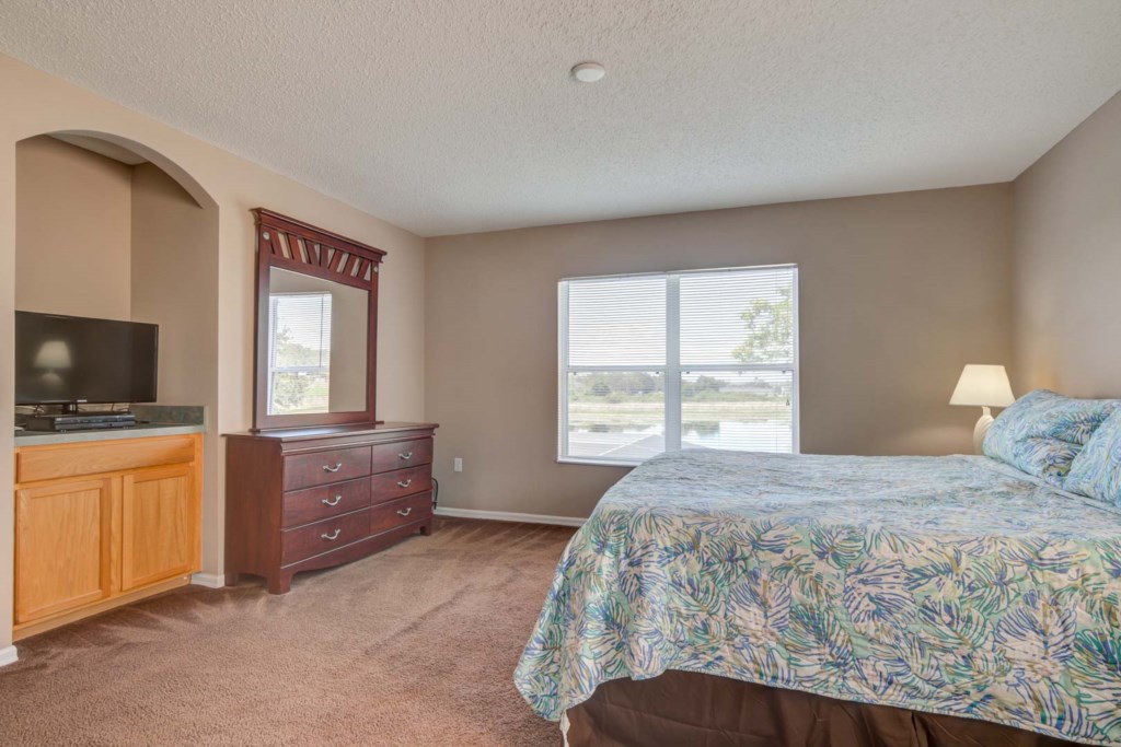 The master bedroom is spacious and includes a king size bed, flat screen TV and private ensuite bathroom. It also has a nice view of the lake. The second bedroom is set up as a junior master, with a queen size bed, flat screen TV and private bathroom. The third and fourth bedrooms both have two twin beds and a flat screen TV. The third bathroom is shared between the third and fourth bedroom.