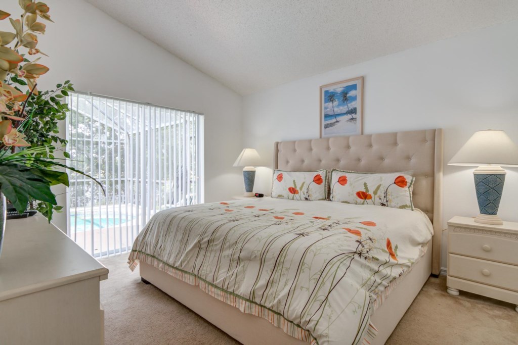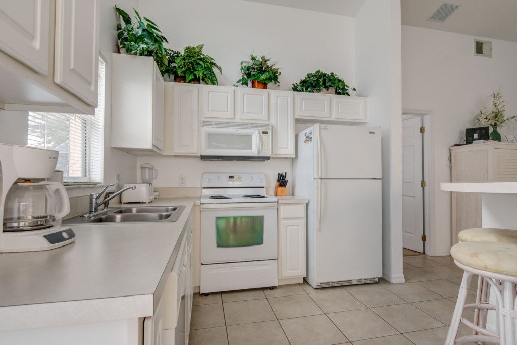 As you walk through the property you are then greated by the dining room which seats 6 people comfortably. Adjacent to the dining room you are then greated by the kitchen which is tiled through out. In the kitchen you will find all the cuttlery, dishware, cookware, and small appliances that you need to cook any great home cooked meal. As you lead out to the pool area you will find sunloungers along with a table and chairs. The pool can be heated for an additional fee. Likewise a propane BBQ grill can be provided for an additional fee. You will find a washer and dryer within the unit along with a back up set of linens & towels.