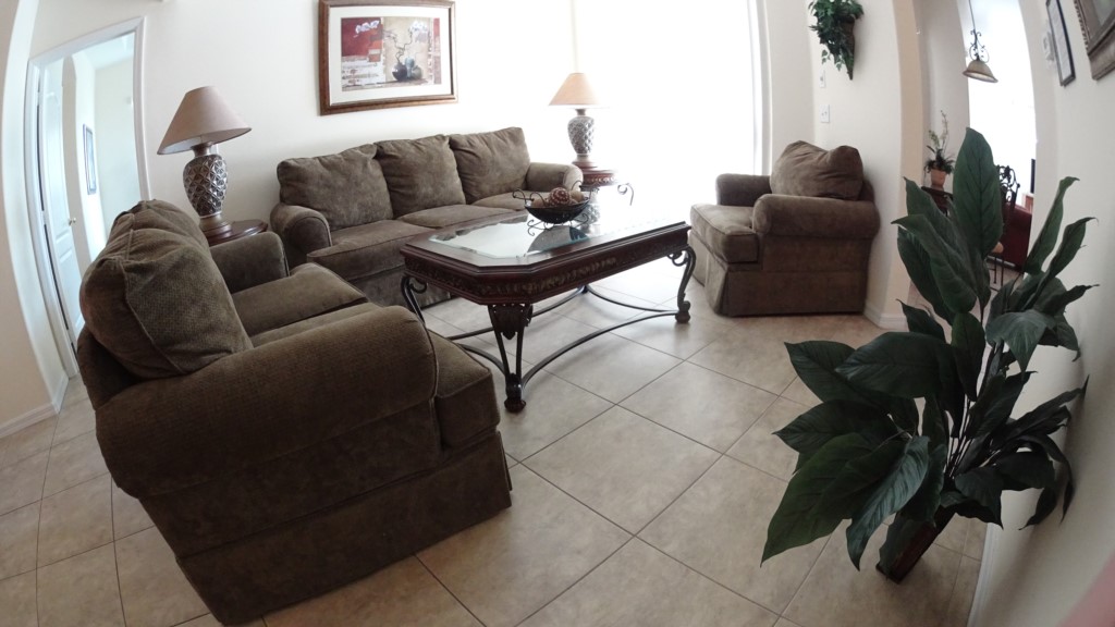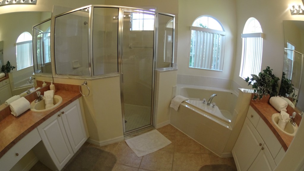 This beautiful Tuscan Hills villa boasts over 3000 sq ft of luxurious air conditioned living space which is tastefully decorated throughout. It is furnished to the highest standard with pool view for soaking up the Florida Sunshine. The Pool and Spa are not overlooked and has a privacy fence in the back. This fantastic villa has an open floor plan excellent for entertaining. The fully fitted kitchen has 2 bar stools and a nook with a table that seats 4, the formal dining seats 6 and it is open to the living room area, family room. The 2 master bedrooms, full size room, 2 twin bedrooms and 1 extra room with sofa sleeper, will accommodate 1 family or 2 families of up to 12 guests. One of the master suites is downstairs and the bathroom has a Jacuzzi tub and separate shower.