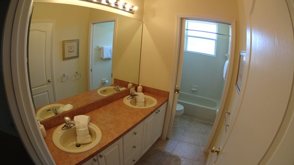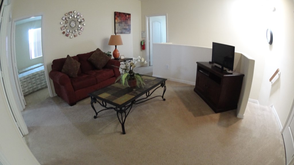 The game room will be great for the kid’s & adult’s entertainment, it has a pool table, air hockey & foosball table and TV with Wii Console!! There are a total of 5 TV’s in the villa. The upstairs loft area, Master bedroom downstairs, the extra room with sofa sleeper, the main living room area and the games room located in the garage. If you are traveling with babies, this home is what you need as it has been supplied with a High Chair, Cot & stroller.