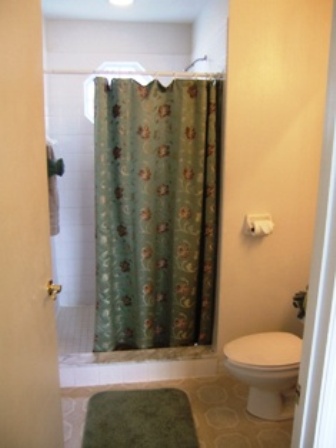 The open kitchen in cream and white is new. Its’ elongated shape means it’s easy to move about. There’s a lot of counter space, enabling you to prepare your meals with ease. It also comes fully-equipped with everything you need to make your kitchen experience and enjoyable and easy one.