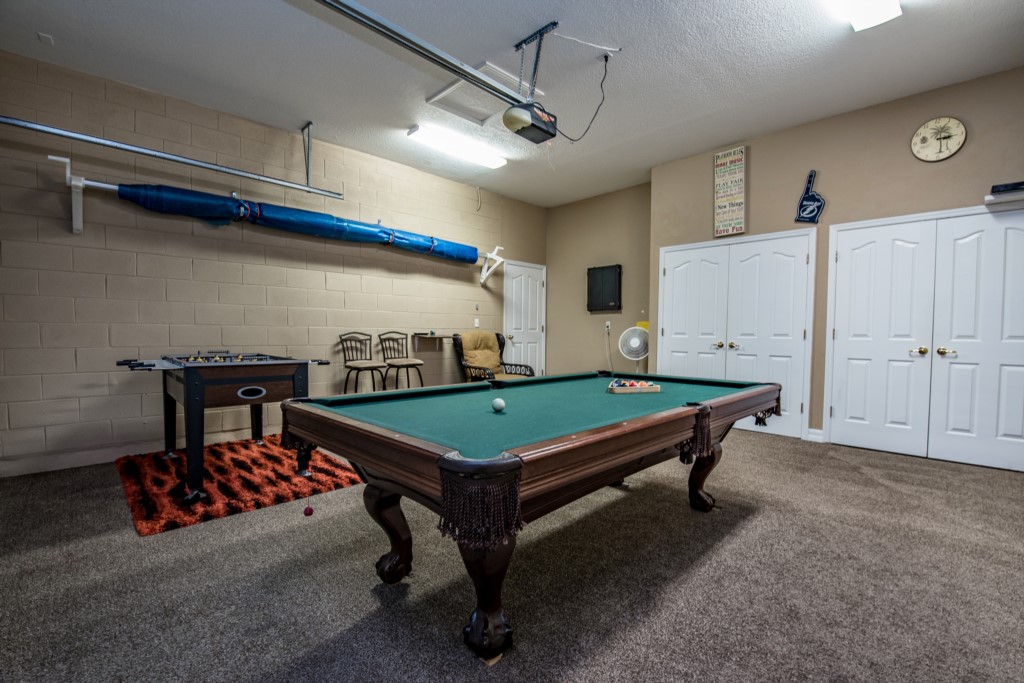 The garage is converted to a games room with fussball table, pool table and el-dart games and a 47" TV. This is a great room to hang out for those young at heart.