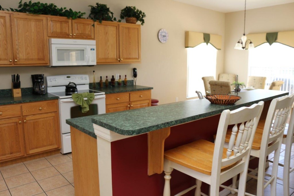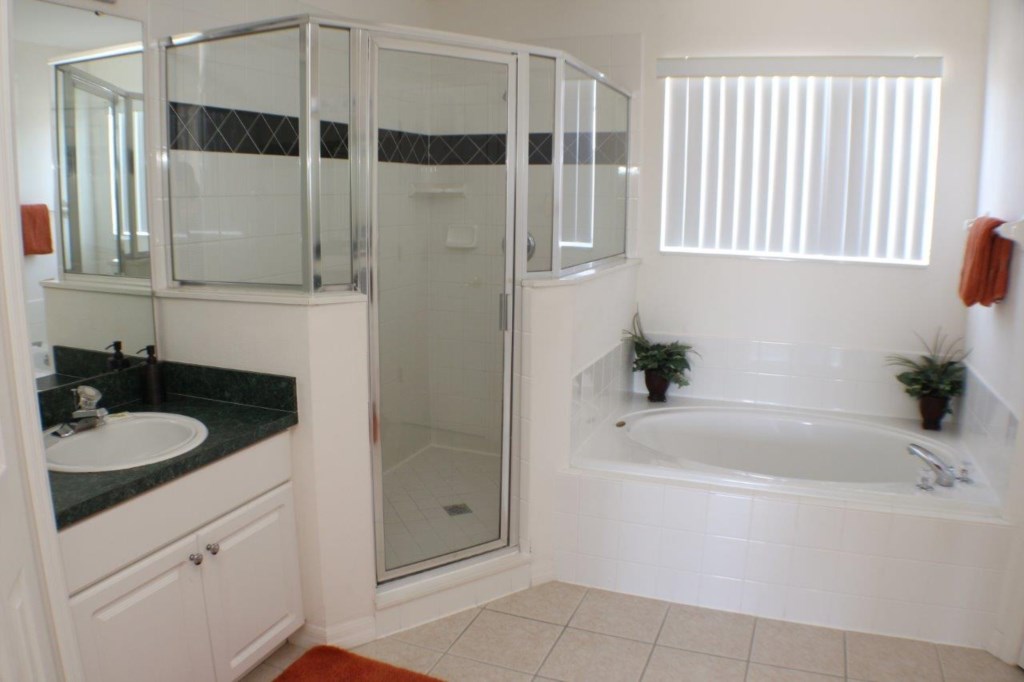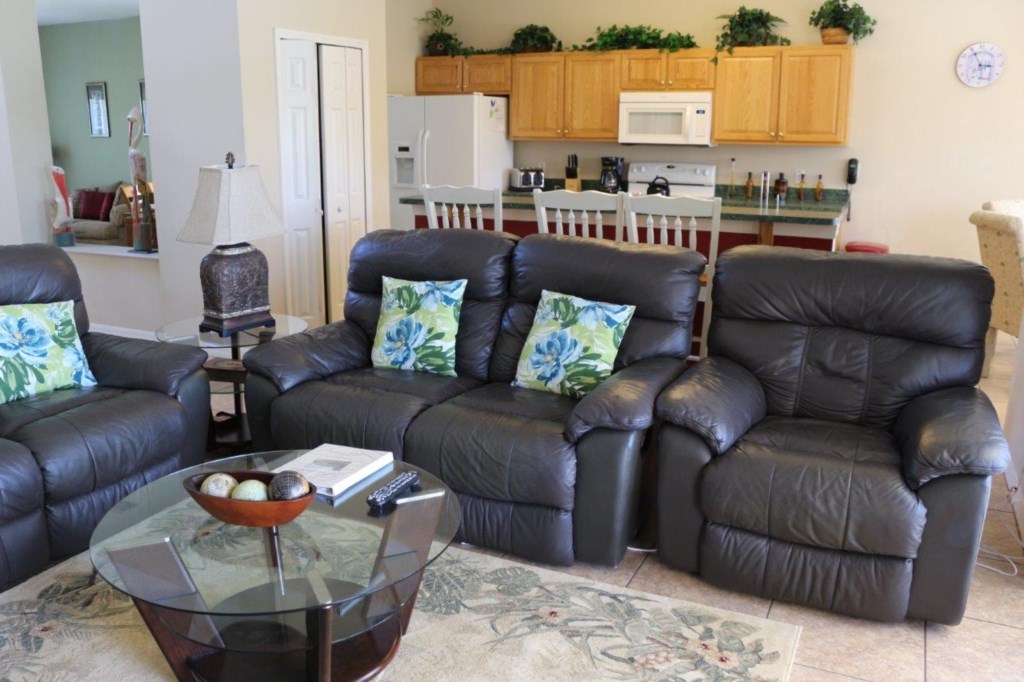 The kitchen is fitted out with all the equipment you would expect to need during your Florida vacation. This includes a full size oven and hob, a microwave oven, a large fridge / freezer with icemaker, dishwasher, waste disposal, coffee maker, blender, toaster and a full set of cutlery, crockery, utensils and housewares.