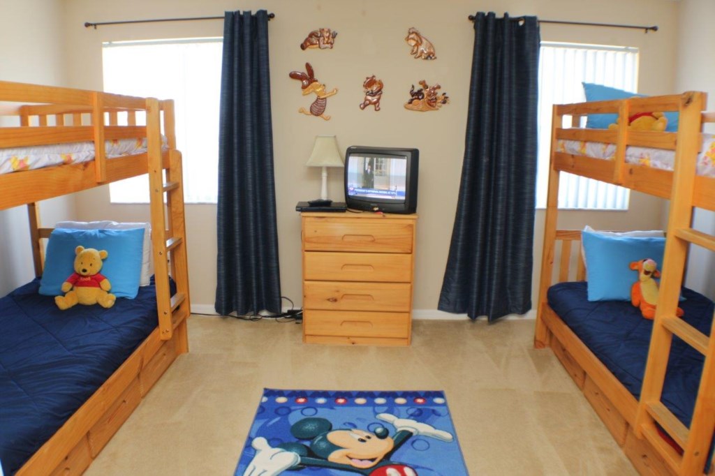 There are two additional bedrooms, each with their own TV. One with twin beds and the fifth bedroom has two sets of bunk beds meaning the villa sleeps 12 without the use of a sleeper sofa.