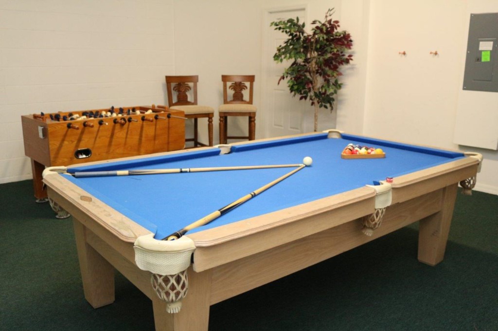 The garage has been converted into a GAMES ROOM. A slate bed pool table has been provided for your entertainment. A PS2 with a selection of games is connected to the tv in the bunk room.