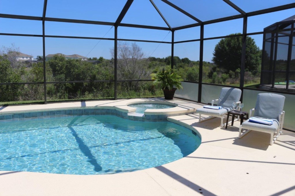 Your luxury vacation home has it`s own private, swimming pool and hot tub which is fully screened and overlooks conservation.
