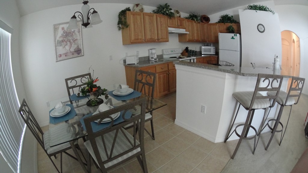 The family room has a stunning view of the pool and open space at the rear of the property. With comfortable furnishings, 40” HDTV, Blu-ray DVD player and FREE wireless internet, this is sure to be the place to unwind and relax. The dining room is great for family meals or entertaining guests offering seating for six. There is additional seating available in the dining area right off the kitchen and via barstools at the breakfast bar making it possible for twelve people to eat a meal together. The kitchen is fully equipped with stove, microwave, dishwasher, large fridge/freezer small appliances, cutlery, utensils, and dishes you need.