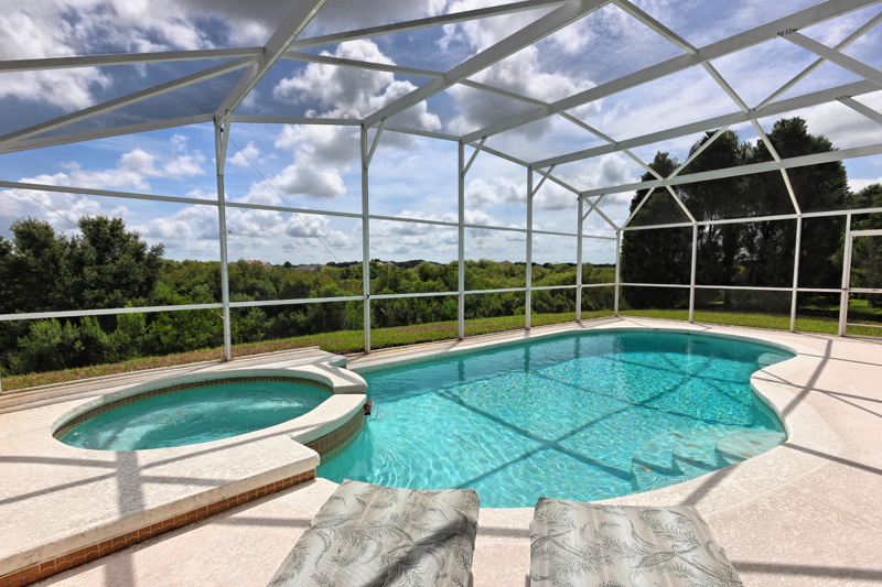 From the moment you enter this beautiful vacation property, you will know you have arrived at your second home. On a secluded cul-de-sac surrounded by mature landscaping this home has a one of a kind view overlooking a vast conservation area. The over-sized pool and lanai provides you an entirely private escape with the convenience of being centrally located for all of the orlando area attractions. This 5 bedroom 4 bathroom and 2 half bathroom home has the perfect open layout for entertaining and enjoying time with friends and family. The home offers cathedral ceilings with 2 lounge areas as well as 2 master suites offering conservation views and one with direct pool access. Devotedly maintained, this home will make you think it is like new! there was a new carrier a/c unit installed in that has received annual inspections and tune-ups to ensure the unit's longevity. In addition to the newer a/c unit, the home has tinted windows throughout to help keep the home cool and reduce energy costs. You and your guests can also enjoy the community clubhouse featuring a private card-access gym, swimming pool, tennis courts and sand volleyball court