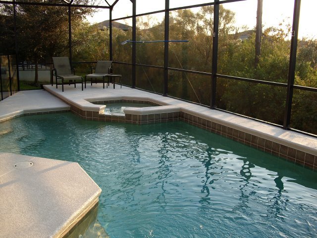 The villa provides a covered patio with table and chairs where guests can enjoy a meal or relax after a long day. The private pool and Jacuzzi are situated next to the patio and makes for an inviting spot on a hot day.