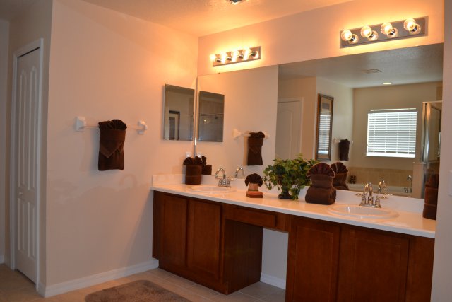 Set in the picturesque green of The Shire @ West Haven, this 2-storey grand vacation rental has a total of 5 spacious bedrooms and 4 beautifully kept bathrooms. In total, this Orlando rental home can sleep 8 people at a time. Perfect for larger groups traveling together or a family getaway, kids and parents alike will love the vast lush lawns. The home is situated at the very end of a quiet and peaceful cul-de-sac, so you won’t be affected by noise or traffic, but at the same time you’ll be able to reap the benefits of all the facilities the community has on offer.