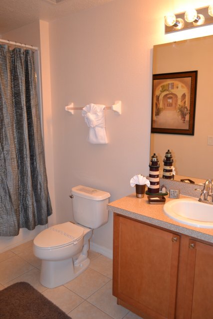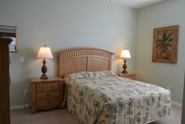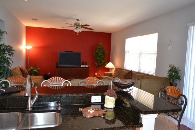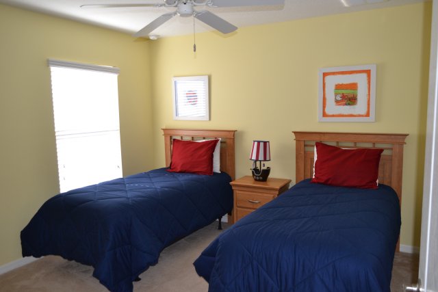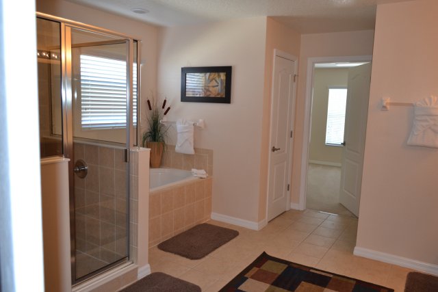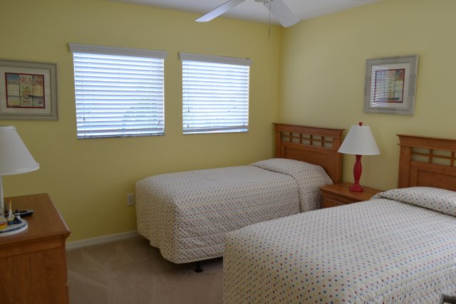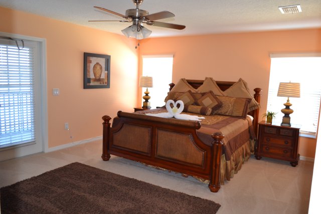 Spanning over a total of 3,212 sq ft of space, this home is air-conditioned from top to bottom, ensuring you remain comfortable in the hotter periods. Downstairs, you’ll find 2 simply decorated, but chic living rooms boasting huge leather lounge suites. There’s also a beautiful formal dining area, which can seat 6 people. Those who love cooking will be thrilled with the spacious well-equipped kitchen with its own island and breakfast nook that has an area to seat 8 people in total. In addition to all the other living spaces, there’s also a family room with a massive sofa – here the whole family will be able to chill out if need be and if you wish, you can choose to be entertained by the giant flat screen TV and surround sound system. This home is not short of TVs and has a total of 6 and 5 DVD players, with each bedroom having its own flat screen. There are 2 master rooms with their own private en-suite bathrooms that boast his and her vanities, a large bath, and a separate walk-in shower cubicle. Additionally, both master rooms have large walk-in wardrobes, making this home a truly plush one. The first master bedroom has a king-size bed and the second, a queen-size bed. Both rooms have access to large balconies with a gorgeous view overlooking the pool below and the wetlands. The remaining bedrooms are 2 twin bedrooms which can be found upstairs and a queen sized room which is downstairs.