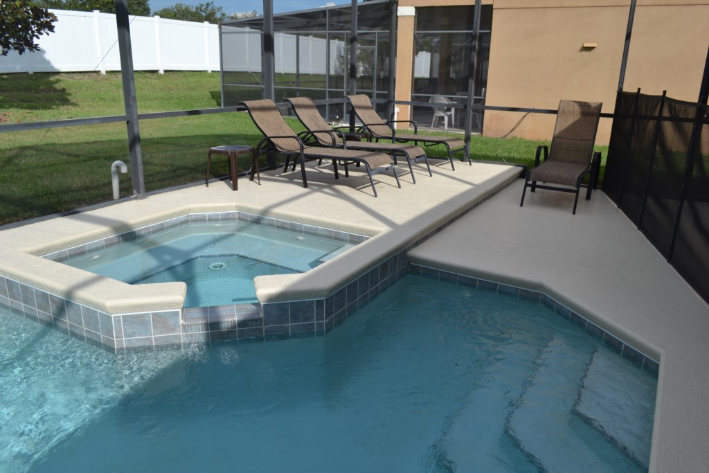 The highlight of the home is the beautiful pool area. There’s an open deck and a covered lanai with outdoor furniture, making this the perfect spot for a bit of alfresco dining. The pool is large in comparison to the home’s size, and attached is a private Jacuzzi where you can relax. As well as outdoor seating, there are also a number of comfortable sun loungers for you to lie on.
