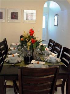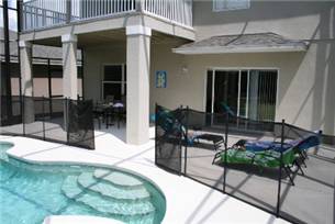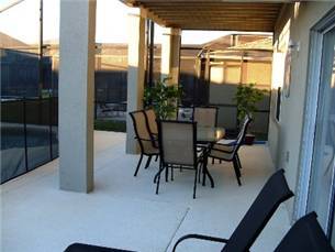 If you need more entertaining, you can play a game of pool in the converted garage area that also has excellent lighting. For more entertainment head outdoors to your large patio area and private lagoon shaped pool and adjoining Jacuzzi. The pool has netting for your children’s safety and it also has a pool blanket. The patio furniture is modern and chic and you’ll love lying on the cushioned sun loungers directly next to the pool. There’s also a beautiful covered area where you can escape the sun’s rays under the covered lanai; here you’ll find a table and chairs where you can relax and even enjoy a bit of al fresco dining. The pool area lights up as does the pool itself, allowing you to enjoy the pool’s facilities after dusk – with such exotic features, you’ll really feel like you’re in paradise!