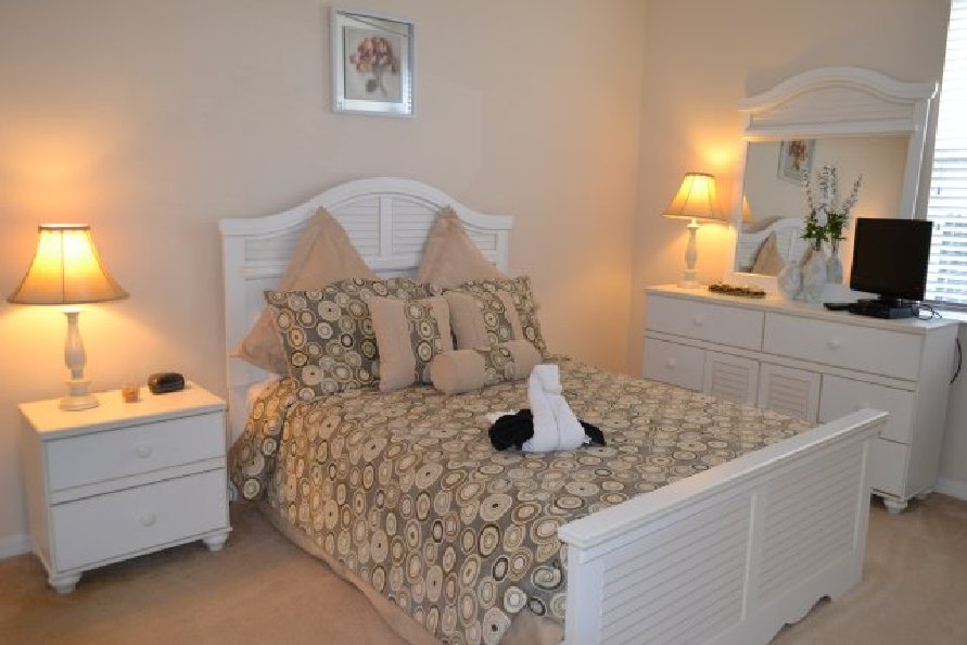 The master bedroom in white and cream boasts a comfortable king-size bed that has a wooden headboard. The large dressing table with a large mirror is ornate and also has a flat screen TV for your entertainment needs. There are a number of antique lampshades to add to the already well-lit room. The room has its own en-suite bathroom with a combined shower and bath and a single vanity. The second master bedroom in brown and cream boasts beautiful dark wooden furniture and features a number of pieces of art on the wall. This room also has its own en-suite bathroom with a combined shower and bath. The guest room is a queen size room with spacious closet space and the remaining 2 bedrooms are twin rooms which are also spacious and have a lot of natural light. Each bedroom has a ceiling fan with different modes to keep you cool during the hotter months.
