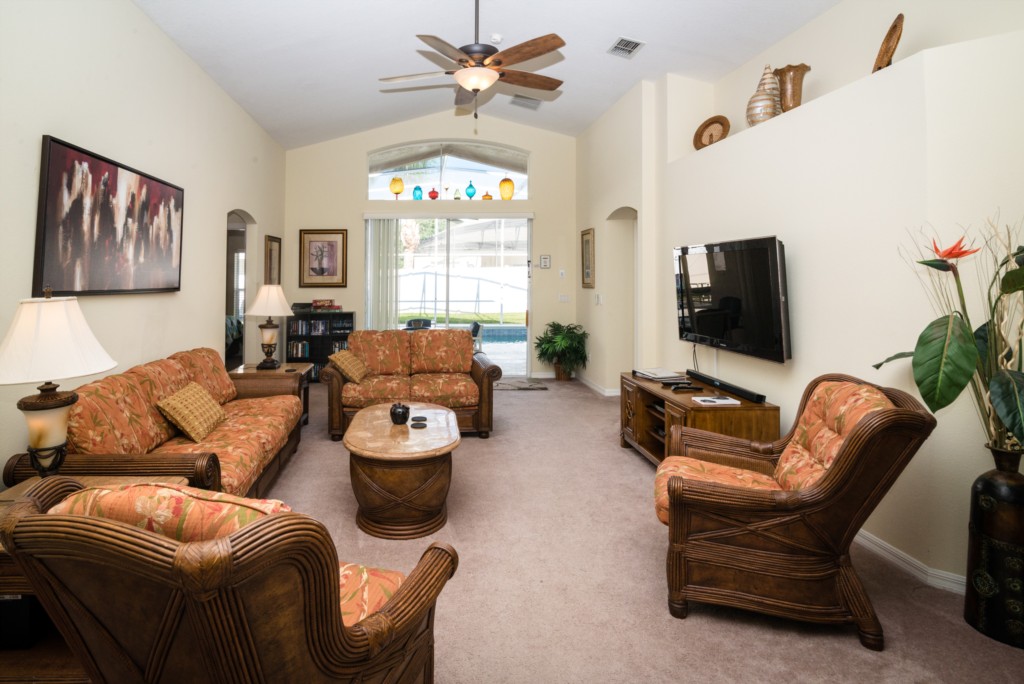 The west-facing pool is a beautiful area to relax. It can be heated if needed, and it also features an electric blanket cover. There are 2 stunning side wall fountains, both of which add to the exoticness of the place. Other than the pool blanket, other safety precautions have been taken with a pool safety net firmly in place ensuring your children’s safety. You’ll be able to relax poolside on one of the comfortable sun loungers or you can sit under the covered lanai where there’s a ceiling fan and outdoor lighting. The patio dining area allows guests to enjoy barbeques or al fresco dining.
