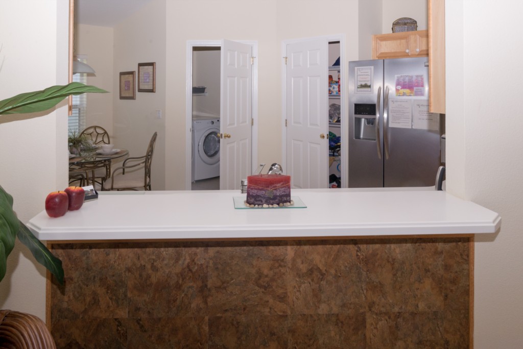 For formal dining there’s a separate dining area that has a beautifully designed dining suite that seats 6 people. Additionally, the room also has a serving hatch, making it even more convenient for you to transfer the food from one room to another. If you’re after a more informal dining setting, you can opt for the sunny kitchen nook, and here you’ll find a small round table in a sunny spot and this can seat 4 guests. The open kitchen connected to the kitchen nook is modern and tiled and has every appliance and kitchen gadget you need to cook the perfect meal for you and your family. The kitchen is a large and convenient space with granite tops, making this an area that more than one person can work at a time. Another convenience of the house, which will make you feel at home, is the laundry room. Unlike some other rentals in the area, you’ll have access to your own washing machine and dryer.
