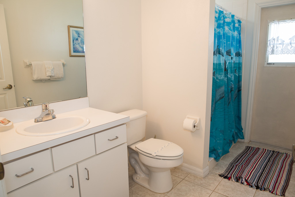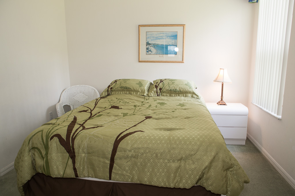 The living room is a bright and open area that provides a cool place to relax after a hot day. Guests can enjoy this room’s comfortable sofa and TV. The room has a number of windows, letting in the natural sunlight. Here, you’ll also find a sliding door that leads you out onto the impeccably kept patio area.