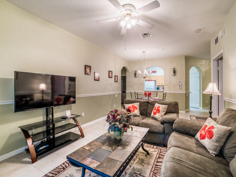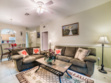 Welcome to Windsor Hills Resort. This 2 bedroom, 2 bathroom condo is sure to please. The open floor plan is beautifully decorated with the living room having a huge 55-inch flat screen with an XBOX. The 2 bedrooms sleeps up to 6 and consists of 1 king bedroom and 1 bedroom with 2 full beds - both have flat screen TV’s. Prepare meals at your leisure in the fully furnished kitchen. Free WIFI and a washer and dryer are included.
