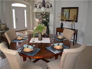 This home is perfect for families with kids with its enclosed private backyard and a well-equipped games room which has an air hockey table, a foosball table and a full-sized pool table. Relax outdoors in the Florida heat on your privately screened deck that lies before your own swimming pool with a heated electric blanket and Jacuzzi. The deck is fully furnished with a deck table set and sun loungers where you can enjoy reading or chatting in the sun. When it gets too hot, you will be protected by the covered lanai, where you can sit and chat until the sun goes down.