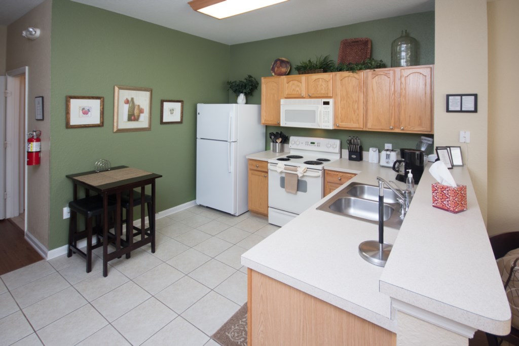 The fully equipped kitchen features a large pantry for your grocery storage.