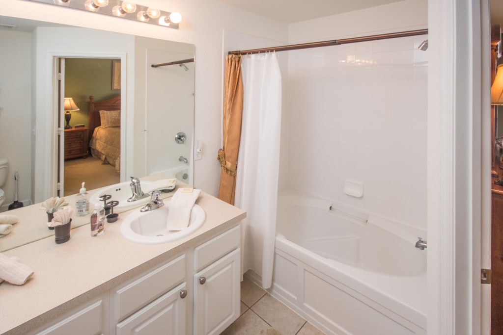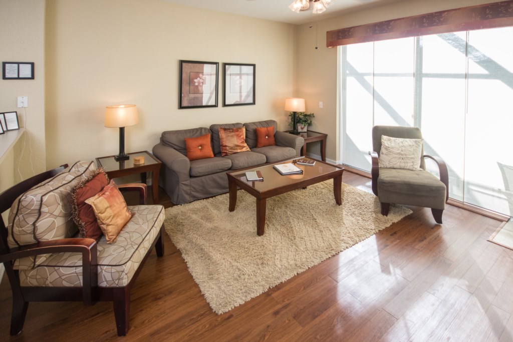 Our town home is located in Windsor Hills, one of the closest resorts to Disney theme parks. A clubhouse features a huge lagoon-style pool, a water slide and hot tub. It has been beautifully decorated with extra features, such as upscale furnishings, decorative painting, and curtains.