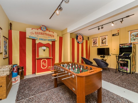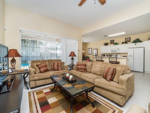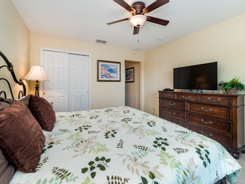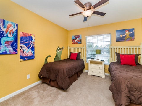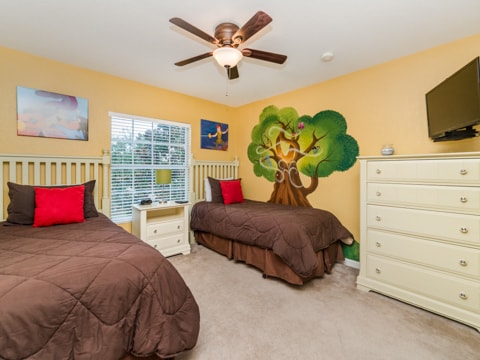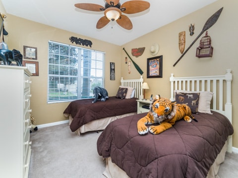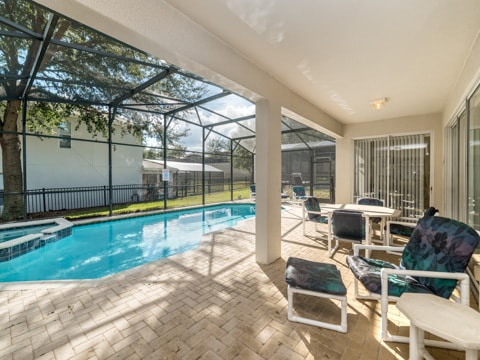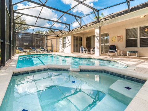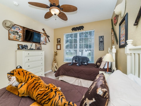 Get ready for a vacation like no other by staying in this gorgeous Windsor Hills vacation home. This spacious home features 5 bedrooms and 5 bathrooms, ready for you and all your guests. Each bedroom is roomy yet cozy. Two king bedrooms, one queen bedroom and two rooms with two twin beds sleep a total of 10 guests. One of the twin bedrooms is decorated with safari and adventure themes while the other one features a few of our favorite Disney characters. This slice of paradise in central Florida will feel like home away from home. The living room has cozy couches with plenty of bright, natural light. The 42” flat screen provides the best spot for movie nights. The open concept living room flows into the kitchen where the chef in your family can whip up any meal at a moment's notices. All the luxuries of home are right there in this kitchen. Enjoy all your meals at the 6-person dining table, or choose to dine a la mode on the screen-porch patio overlooking the pool. The pool and spa really make this home special. Spend all day enjoying the sun, pool and more when you stay here. This home also has an awesome game room with foosball and other fun games. Lastly, this home has a washer and dryer as well as free WiFi for you to use. Book your stay today and enjoy all that Florida has to offer!
