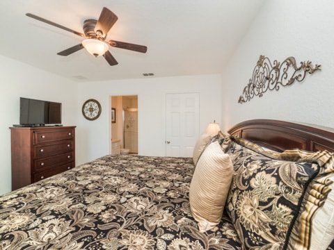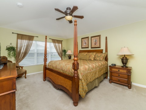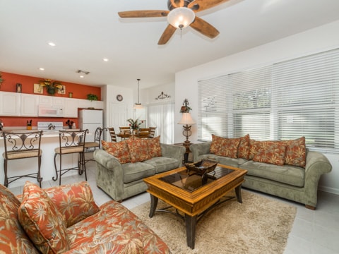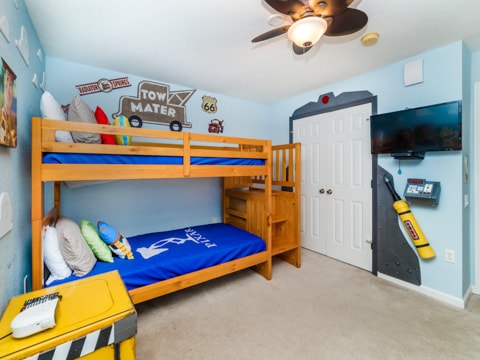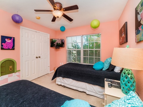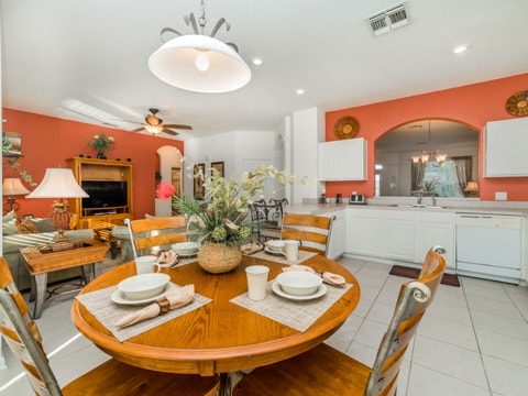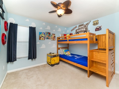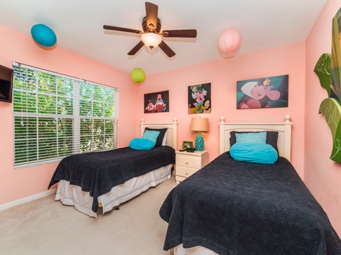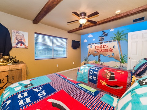 It is time to book your dream vacation and it all starts with this immaculate home located in the resort community of Windsor Hills. The true definition of home is found here with the bright colors, cozy furniture and so much more. Six bedrooms and 4 bathrooms makes for a home large enough to sleep 12 guests. Two bedrooms with kings, 1 bedroom with a queen and 3 bedrooms with 2 twins sleeps everyone very comfortably. Each twin room is set to a different theme including the Pirates of the Caribbean. As you enter this home, the formal living room and dining room greet you. Enjoy all of your meals around this 6 person dining table. As you continue, the cozy main living room features a 40-inch flat screen, as well as big, bright couches. The kitchen, outfitted with all the luxuries of home, overlooks the living room. The kitchen is the best spot to whip up a quick meal for the whole family. This area of the home is complemented by the wonderful view of the pool and spa along with the warm natural lighting it brings into the house. The pool and spa is perfect for the sunny days in Florida. Be sure to pack your swimsuit because this is where all the fun will happen! This home also comes with a washer and dryer as well as free WiFi for you to use. Lastly, do not forget the game room which will be host to plenty of family fun. Air hockey, billiards and more are here waiting for you. Get in on all of this fun and book your stay today!