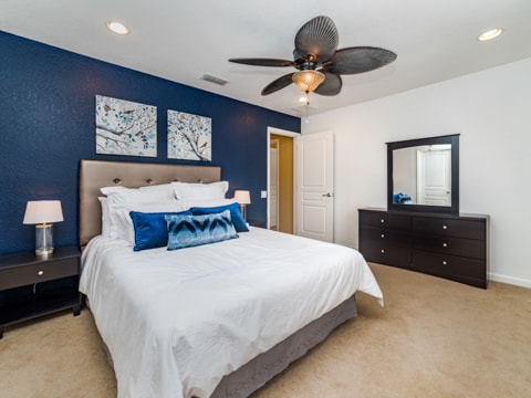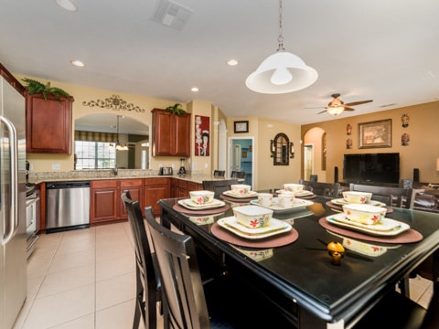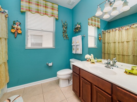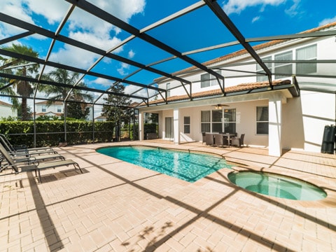 Get ready to stay in a gorgeous 6 bedroom 4 bathroom home when you book this vacation home today! Located in Windsor Hills, this home is a part of the Grand Collection. Featuring decor and furniture with comfort and style in mind, this home feels like the perfect escape for a trip to Florida. Sleeping a total of 12 guests, this home offers 2 bedrooms with king beds, 2 bedrooms with queen beds and 2 bedrooms with 2 twins. With this many sleeping arrangements, you won’t have to share a bed! In the twin rooms, a Disney and Minions theme will be very popular with the kids. The other rooms are decorated with neutral and calm colors, perfect for a relaxing night sleep. This home has 2 living rooms, perfect for everyone. The formal living room offers couches while the main living room has a leather wraparound couch and a 55” flat screen. The kitchen in this home offers the luxuries of vacation with the conveniences of home. Upgraded appliances, granite countertops, counter space and so much more will inspire your inner-chef. With 2, 6 person dining tables, everyone in your family has a seat at this dinner table. Togetherness is what this home is all about and that is reflected in the dining rooms, pool and game room! The pool and spa are absolutely stunning with crystal blue water. Stay out here all day and enjoy the sun. Also, the game room will be the spot for fun, family competition. Play billiards here all night and brush up on your skills. This home is perfect for your next vacation to Florida. Book your stay today!