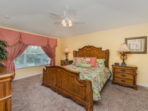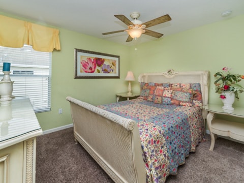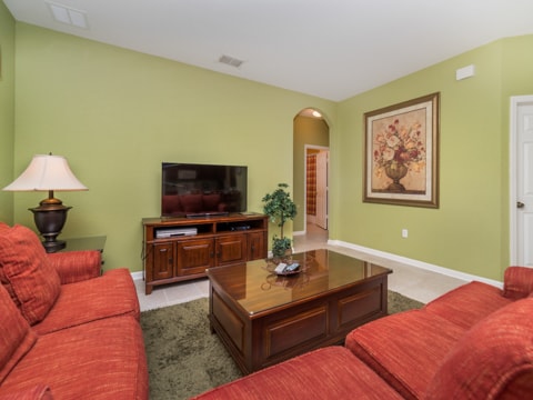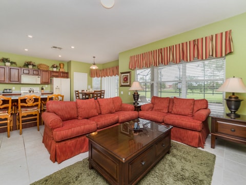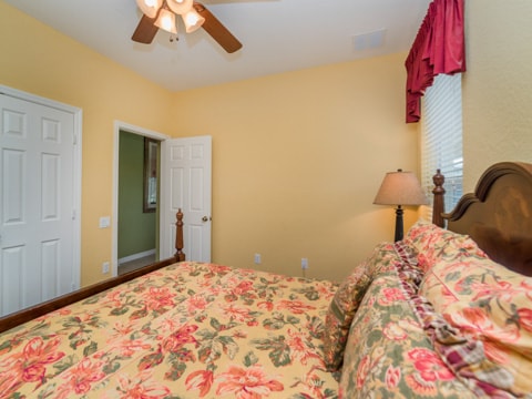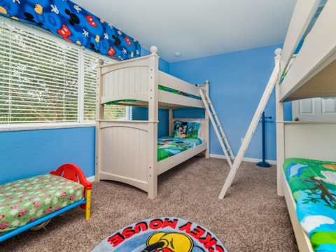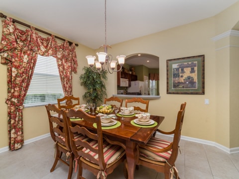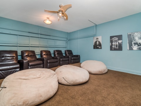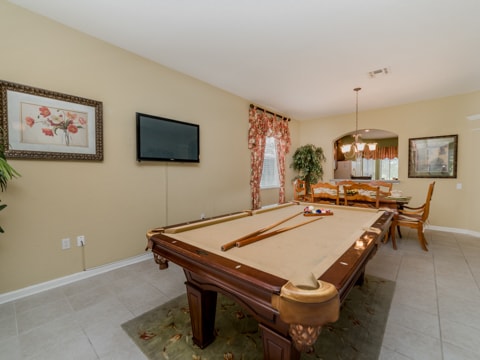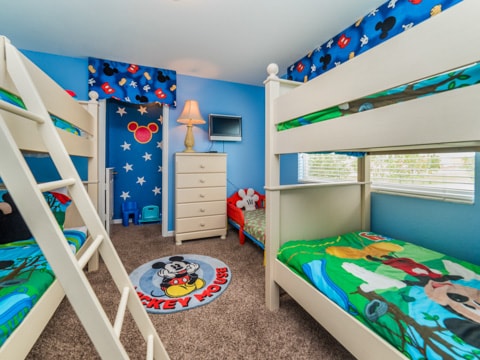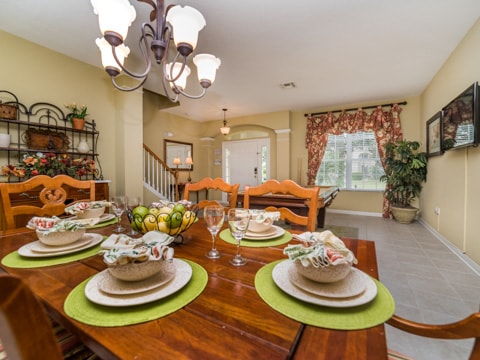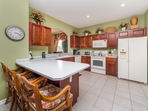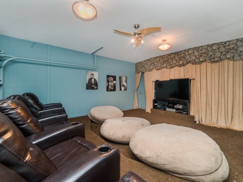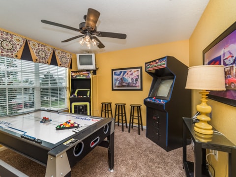Home away from home” is the perfect way to describe this 5 bedroom, 4 bathroom home located in the gated community of Windsor Hills. A warm and inviting atmosphere greets you in every room. The living room is perfectly decorated with cozy couches and a 50” flat screen TV. The open concept makes the home feel large and spacious with the kitchen right around the corner. The kitchen provides everything you need to make a gourmet meal for you and your guests. Simple breakfasts to the french Coq au Vin can be prepared here! Enjoy these meals at the breakfast nook or the formal dining room. The 5 bedrooms in this home give you and your guests much needed space for your holiday. Two rooms with king beds, two rooms with queen beds and 1 room with 2 sets of bunk beds sleeps a total of 12. The bunk bed room is especially fun with a Disney theme. Make sure to have family movie nights at the home theatre. Bean bag seats and leather recliners will make you feel as though you’re in the movie! This home is jam-packed with even more entertainment. The game room has air-hockey, pac-man machines and so much more. If that isn’t enough, head out back to the gorgeous pool and spa. The perfect spot to lay out all day and enjoy the pool can be found here. Book your stay today!